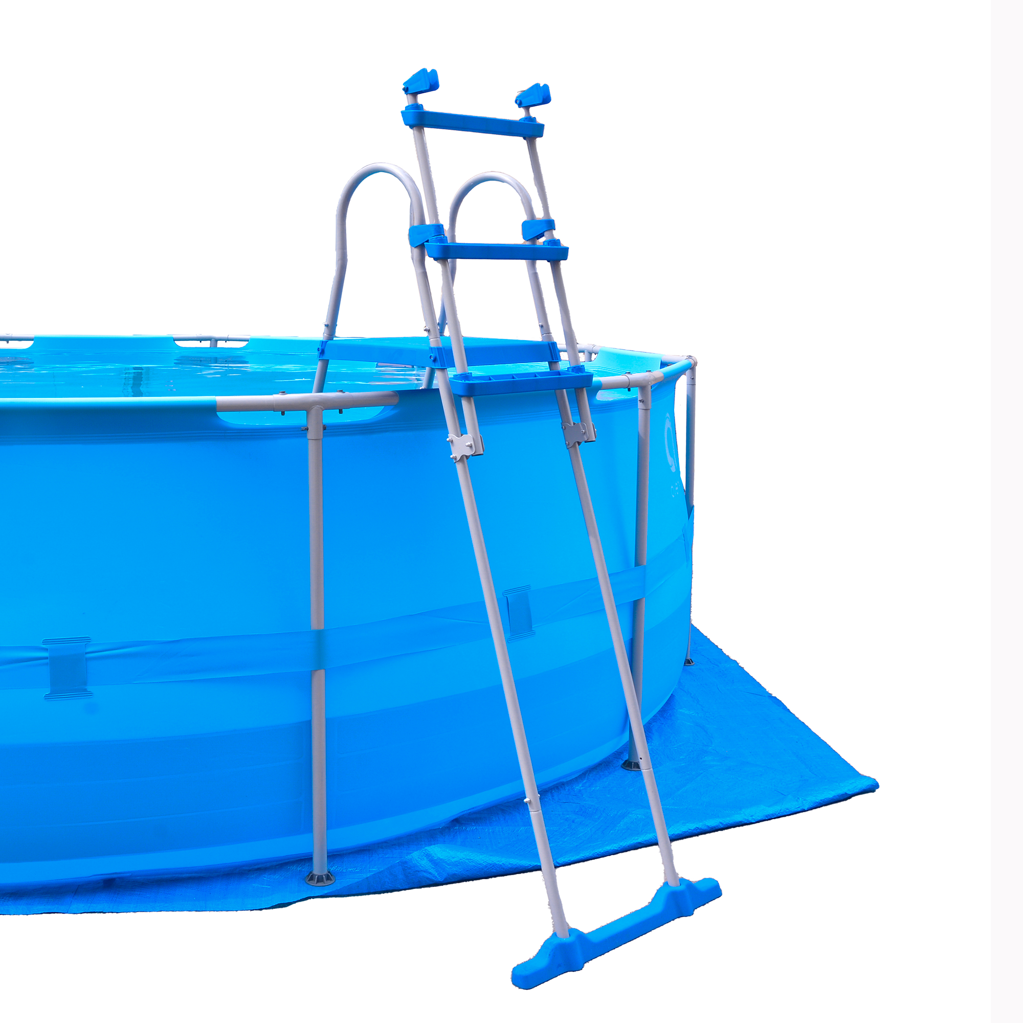 Basen wyposażony jest w praktyczną drabinkę, która ułatwia bezpieczne wchodzenie i wychodzenie, oraz matę pod basen chroniącą dno przed uszkodzeniami. Dodatkowo w zestawie znajduje się łatka naprawcza, która pozwala szybko usunąć drobne uszkodzenia.