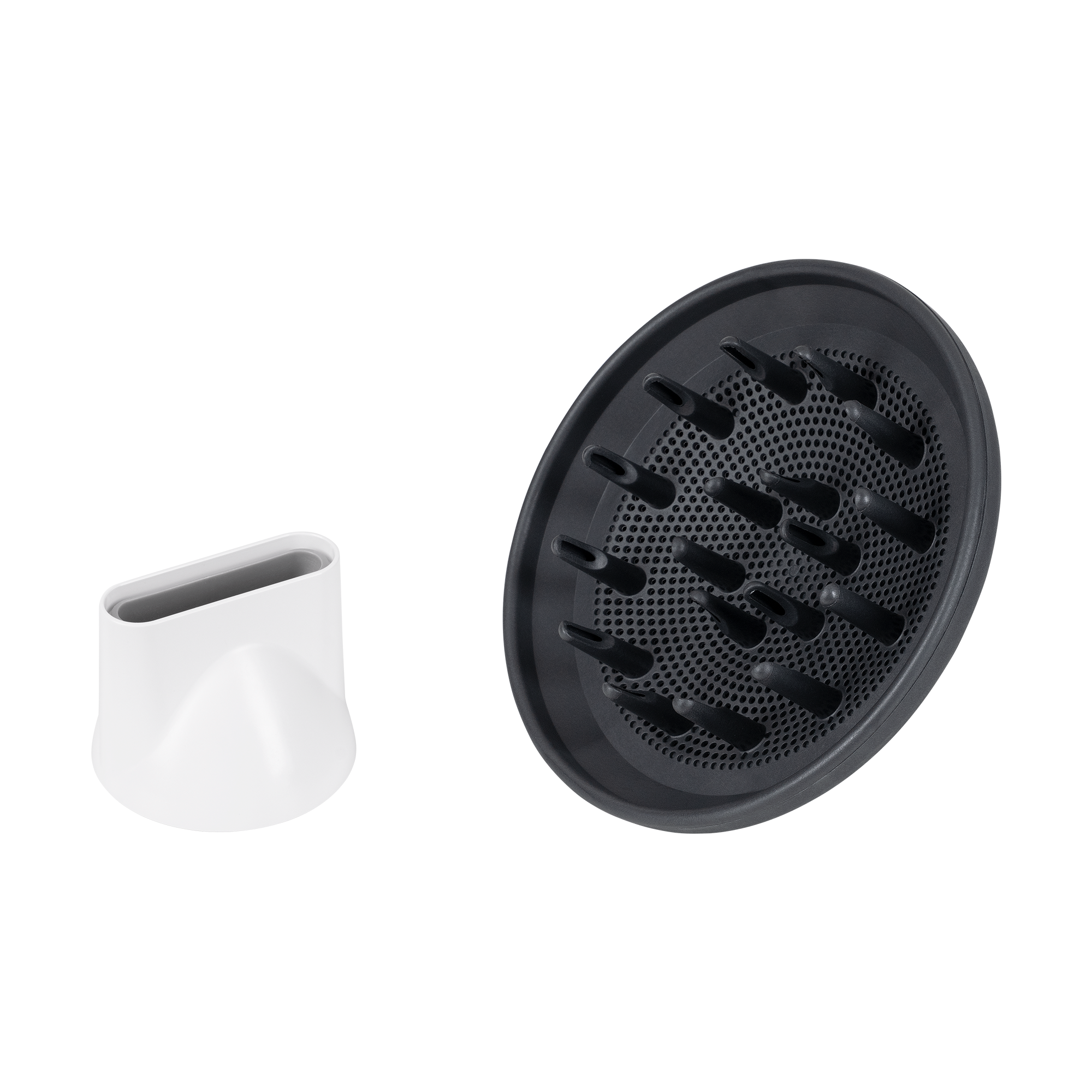 Magnetyczna końcówka do stylizacji obracająca się o 360° umożliwia szybkie i wygodne dopasowanie kierunku nawiewu. W zestawie znajduje się koncentrator oraz dyfuzor, które pozwalają tworzyć różnorodne fryzury – od idealnie wygładzonych po naturalne fale i loki.