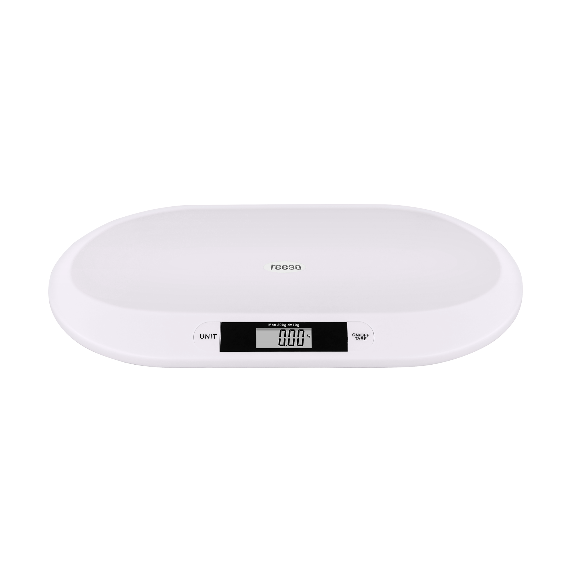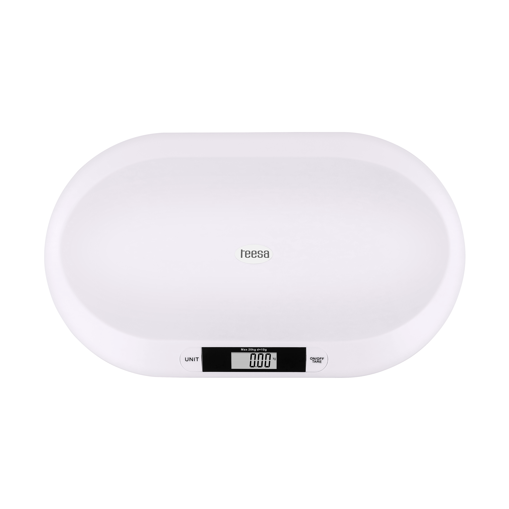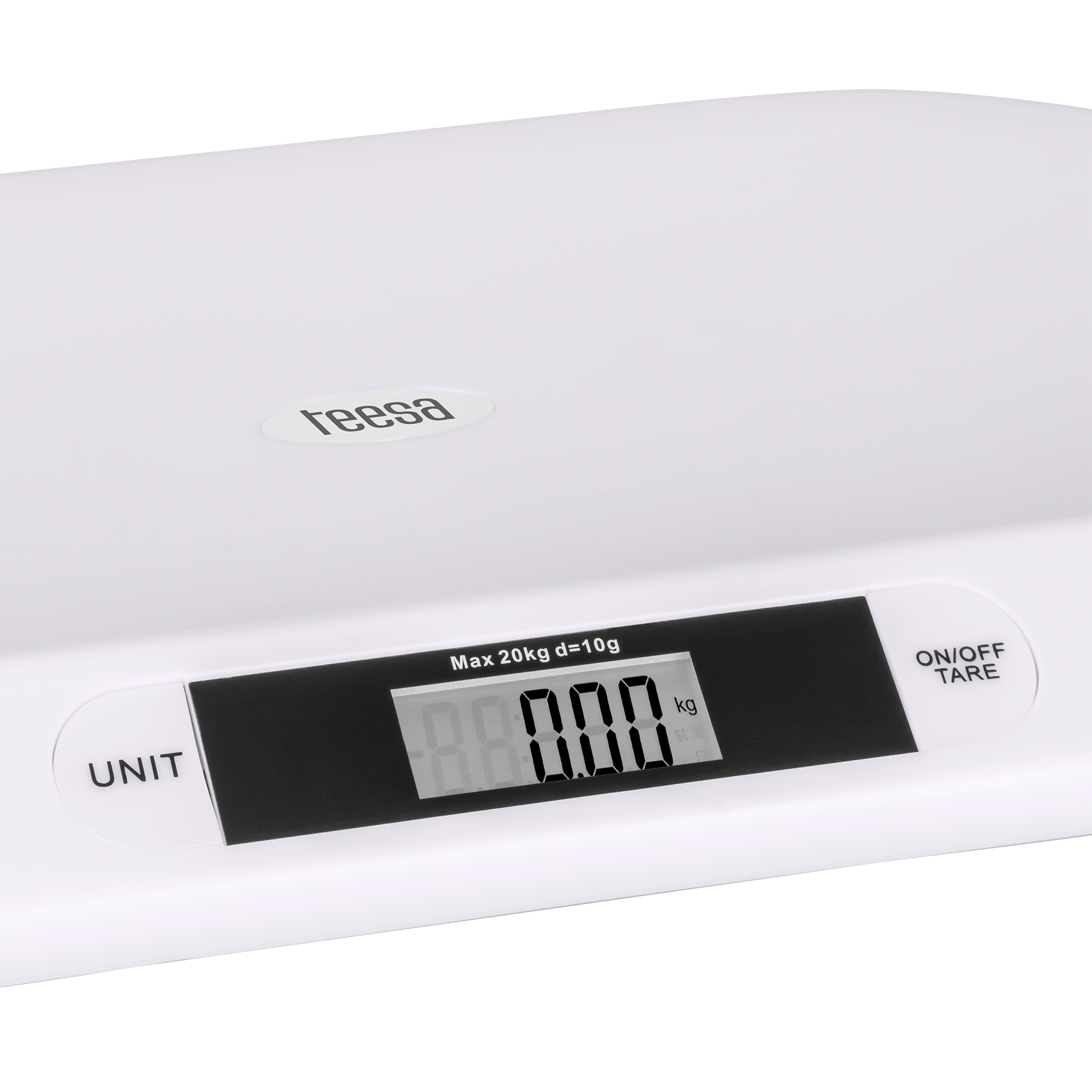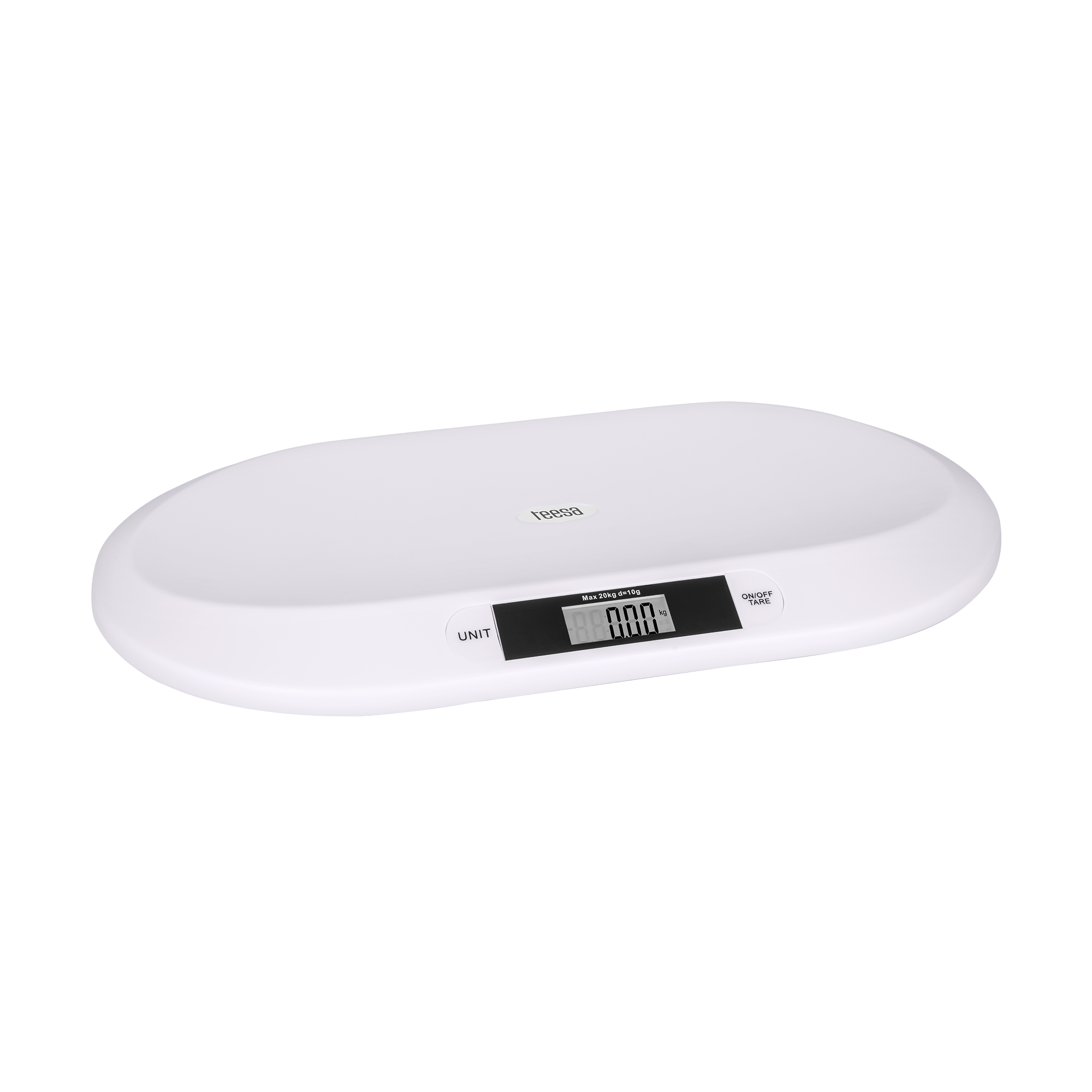 Duży i czytelny wyświetlacz LCD zapewnia wygodny odczyt wyników pomiaru w każdych warunkach. Dzięki wyraźnym cyfrom rodzic może szybko sprawdzić wagę dziecka bez konieczności pochylania się czy długiego analizowania wskazań. Intuicyjny panel sterowania z przyciskiem funkcyjnym umożliwia łatwą obsługę urządzenia nawet w trakcie opieki nad niemowlęciem.