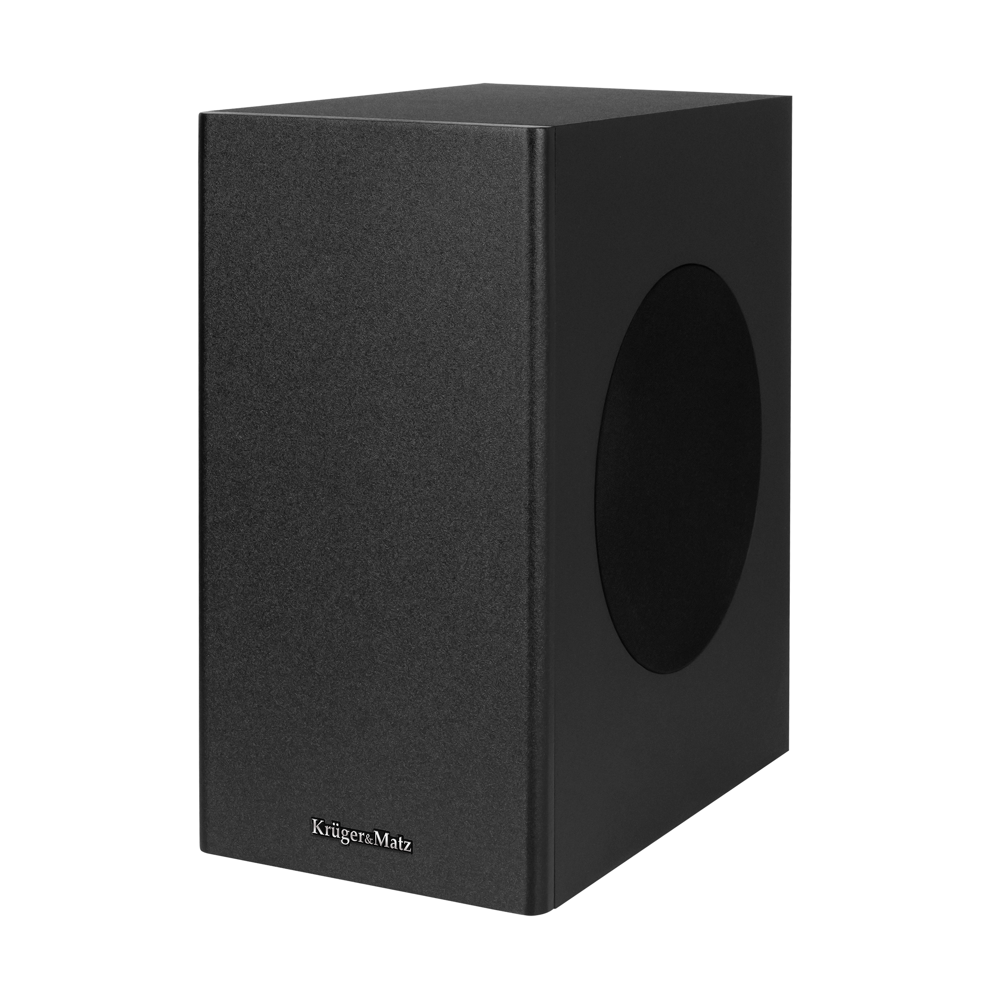 Do zestawu dołączono pasywny subwoofer z 4-calowym głośnikiem o mocy 25 W, który odpowiada za odtwarzanie niskich częstotliwości. Dzięki niemu dźwięk zyskuje głębię i mocniejszy bas, szczególnie odczuwalny podczas oglądania filmów akcji, koncertów czy słuchania muzyki. Subwoofer uzupełnia brzmienie soundbara, tworząc pełniejszy i bardziej dynamiczny efekt audio.
