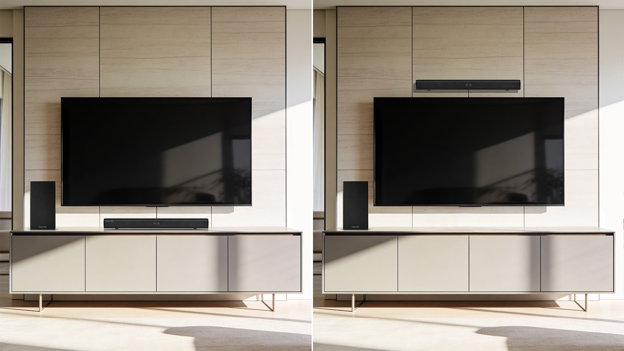 Soundbar można ustawić na szafce RTV lub zamontować bezpośrednio na ścianie, co pozwala dopasować instalację do układu pomieszczenia. Montaż ścienny pomaga zaoszczędzić miejsce i stworzyć estetyczną, uporządkowaną przestrzeń wokół telewizora. Dzięki kompaktowym wymiarom urządzenie dobrze komponuje się z większością ekranów i nie zajmuje dużo miejsca.