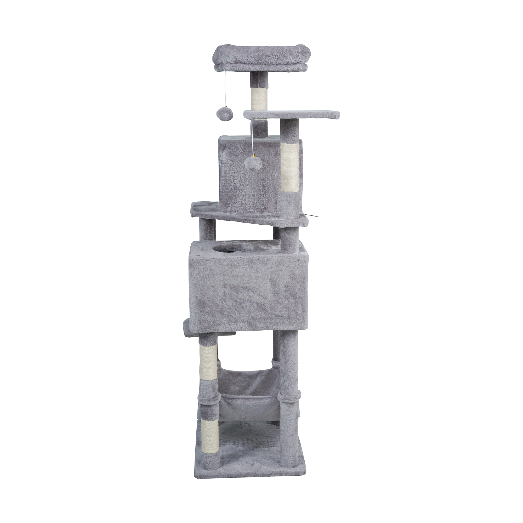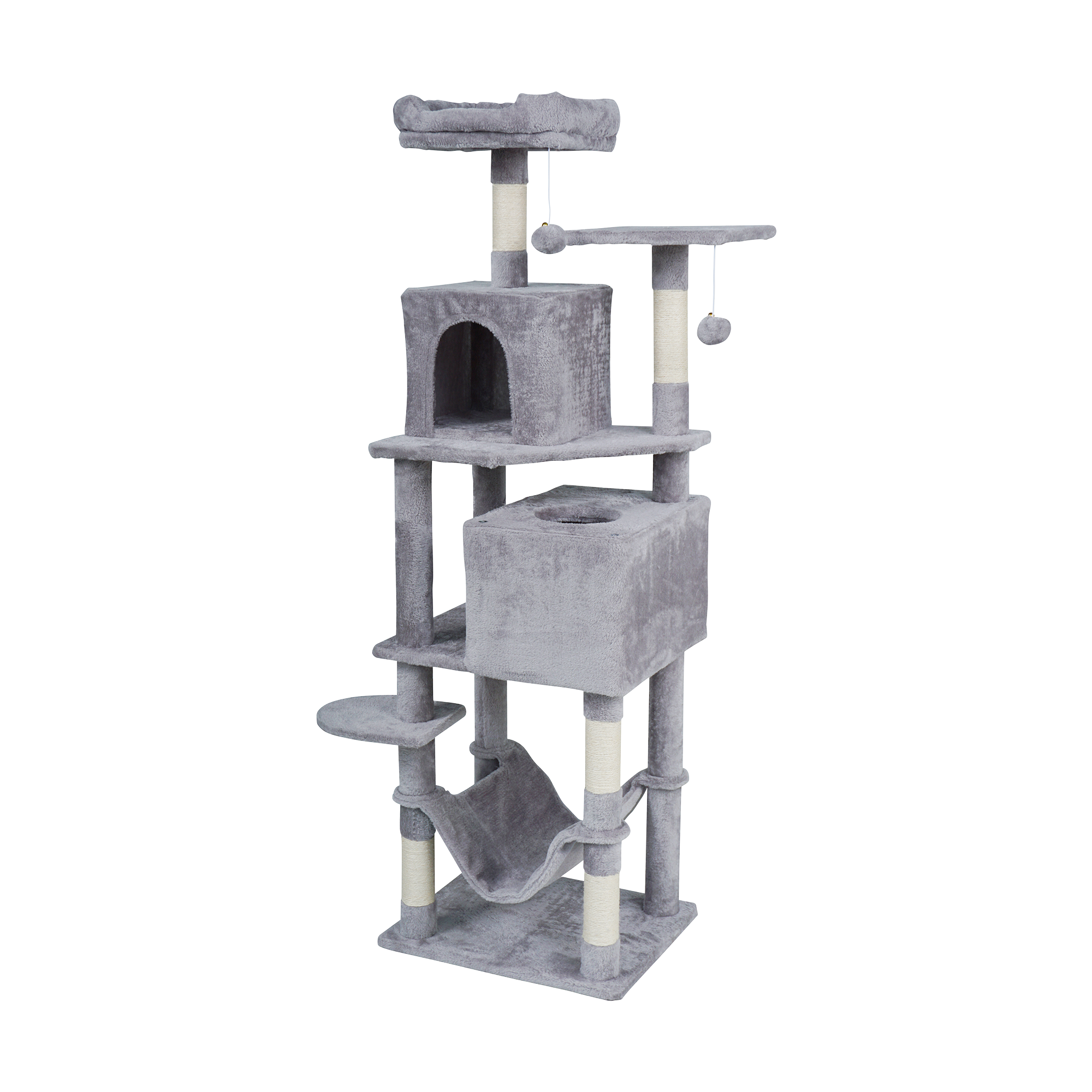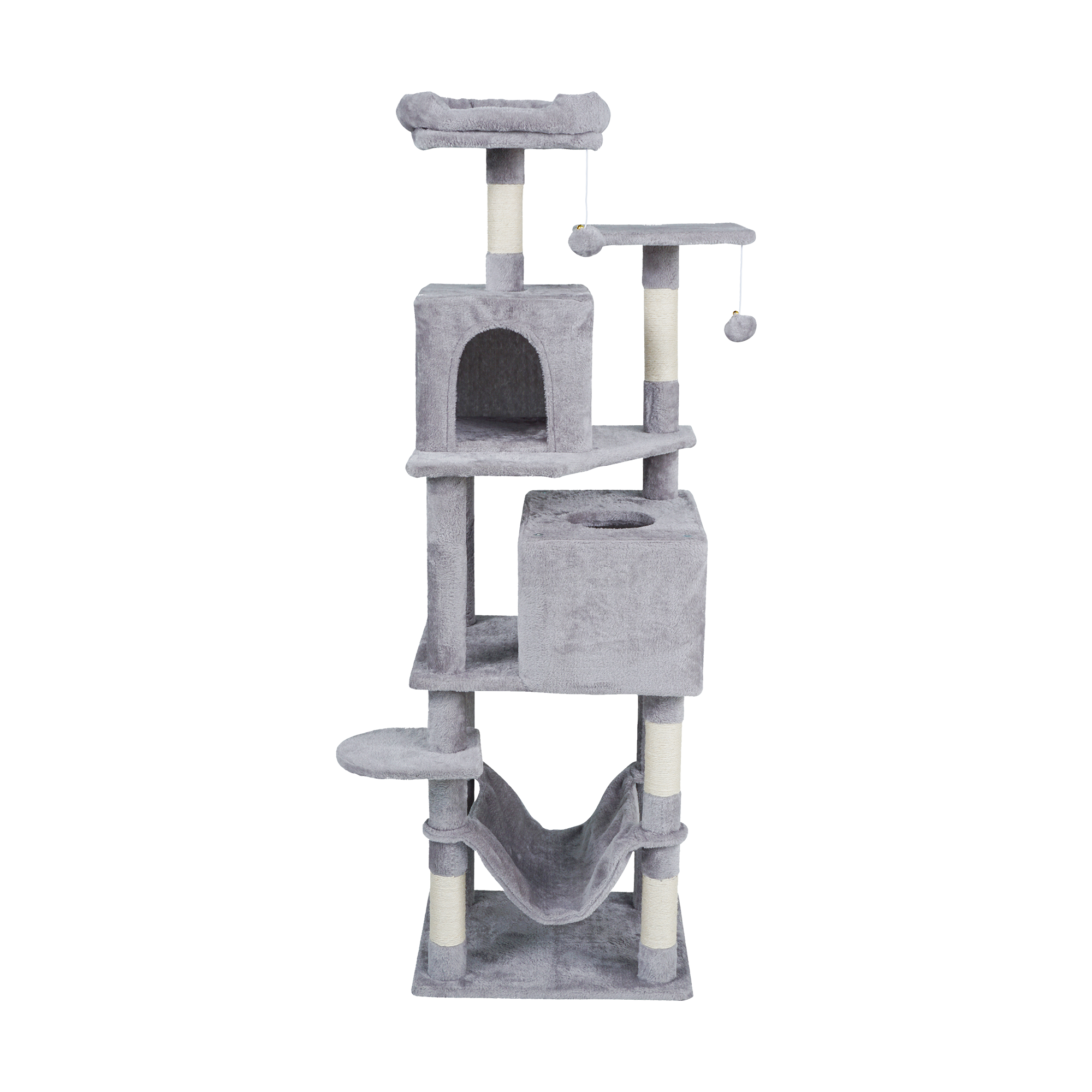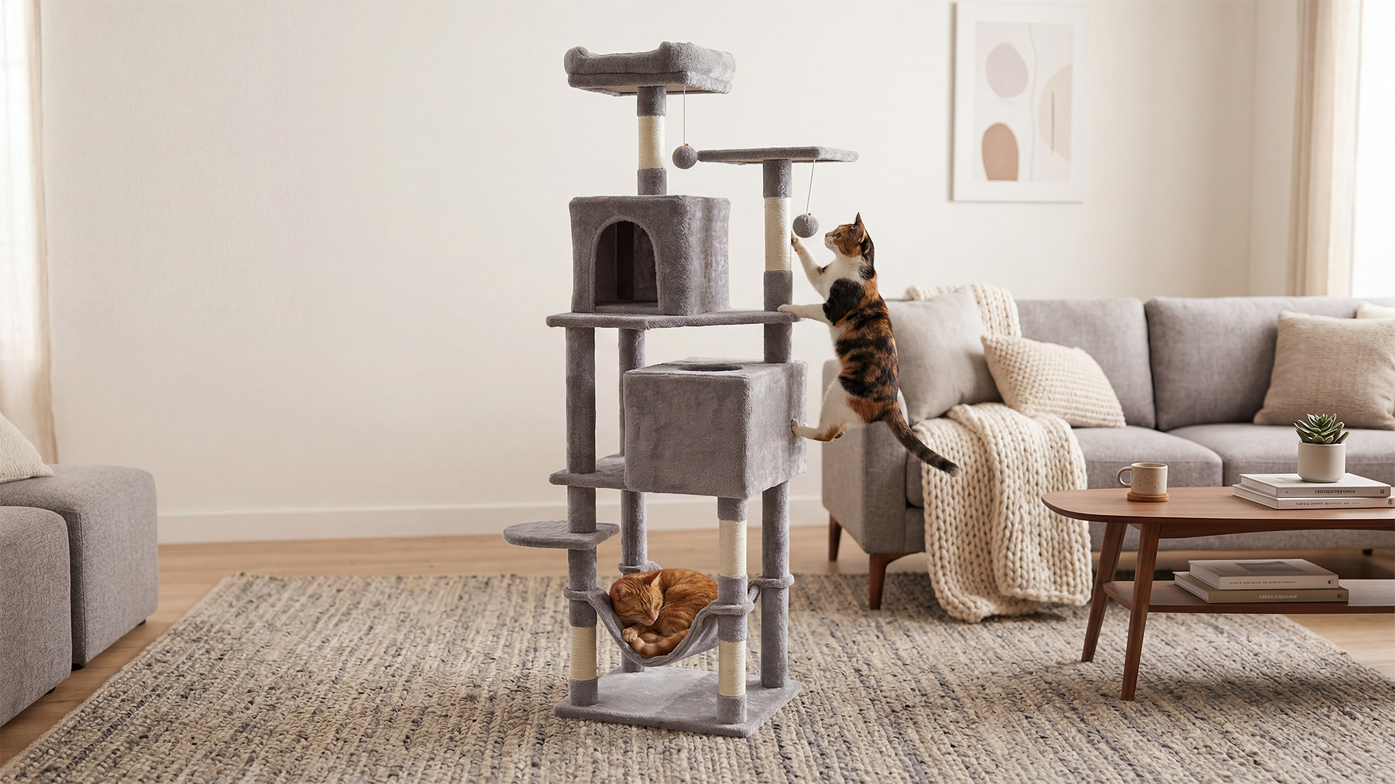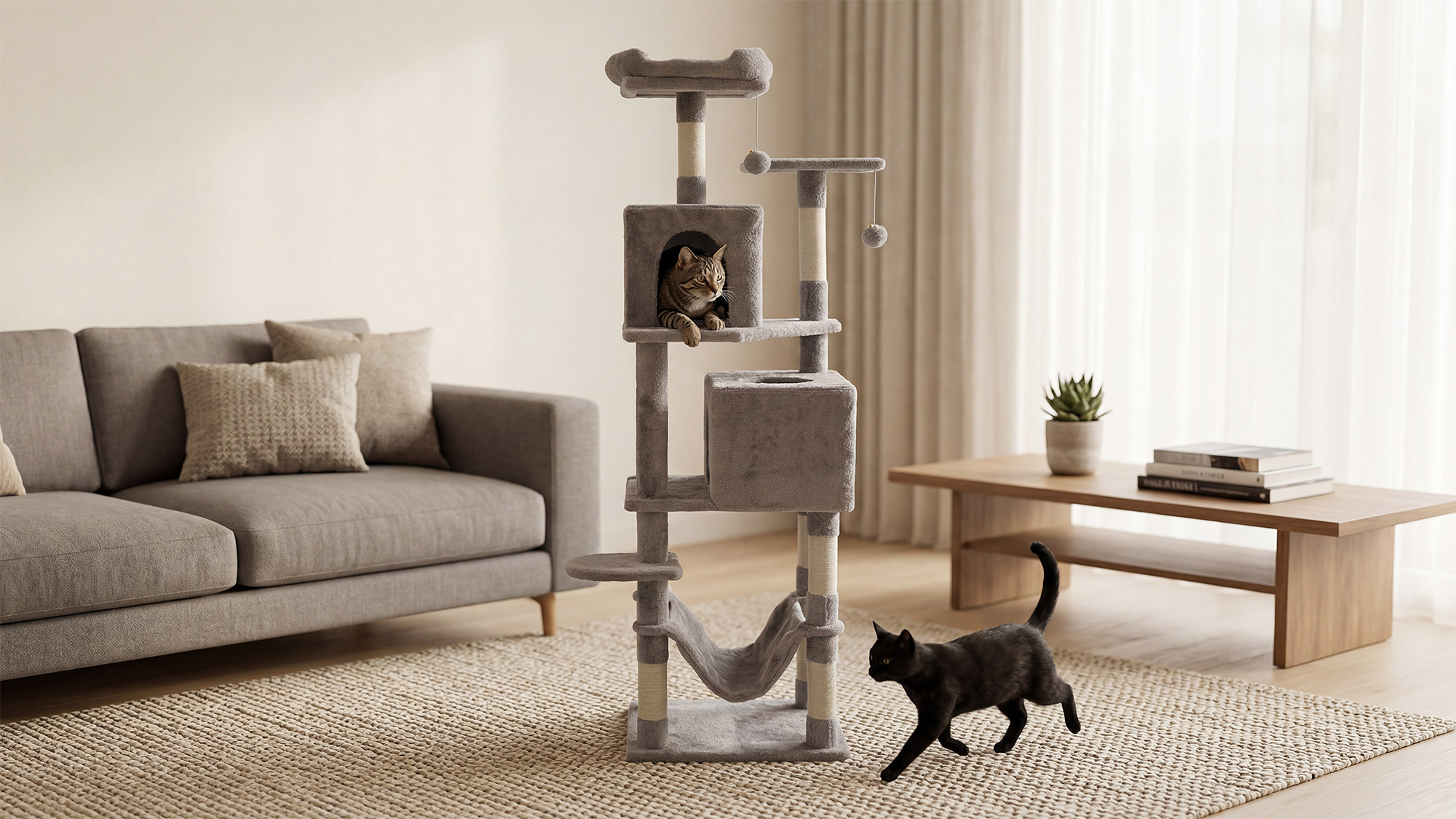 Duży pluszowy hamak oraz wygodne legowisko na najwyższym poziomie oferują kotu komfortowe miejsca do relaksu i obserwacji. Miękkie wykończenie sprzyja wypoczynkowi po zabawie, a podwyższona pozycja daje pupilowi poczucie kontroli nad otoczeniem i bezpieczeństwa.