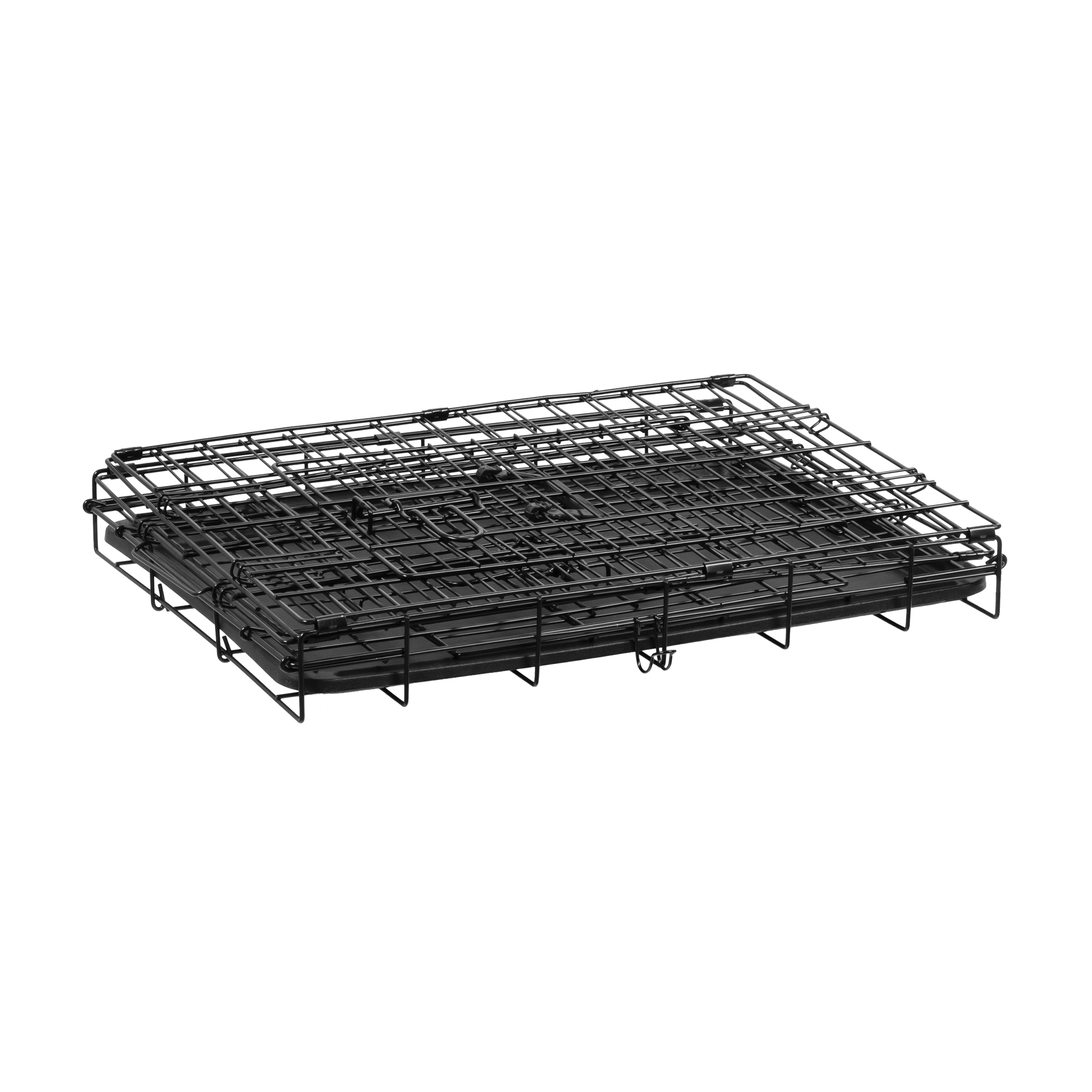 Praktyczna, składana konstrukcja umożliwia szybkie złożenie klatki bez użycia narzędzi. Dzięki temu z łatwością zabierzesz ją w podróż lub schowasz, gdy nie jest używana. Kompaktowy rozmiar po złożeniu pozwala zaoszczędzić miejsce, co czyni ją wygodnym rozwiązaniem zarówno w domu, jak i w trasie.