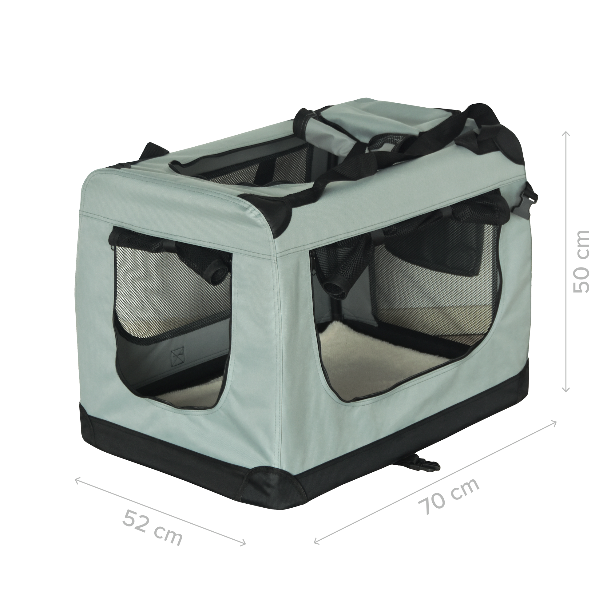 Transporter REBEL ANIMALS L to wygodna torba transportowa o wymiarach 70×52×50 cm, idealna dla kotów, małych i średnich psów oraz innych drobnych zwierząt. Wytrzymała konstrukcja, miękka mata i przewiewne siateczkowe ścianki zapewniają komfort oraz bezpieczeństwo podczas podróży, wizyt u weterynarza i codziennego użytkowania.