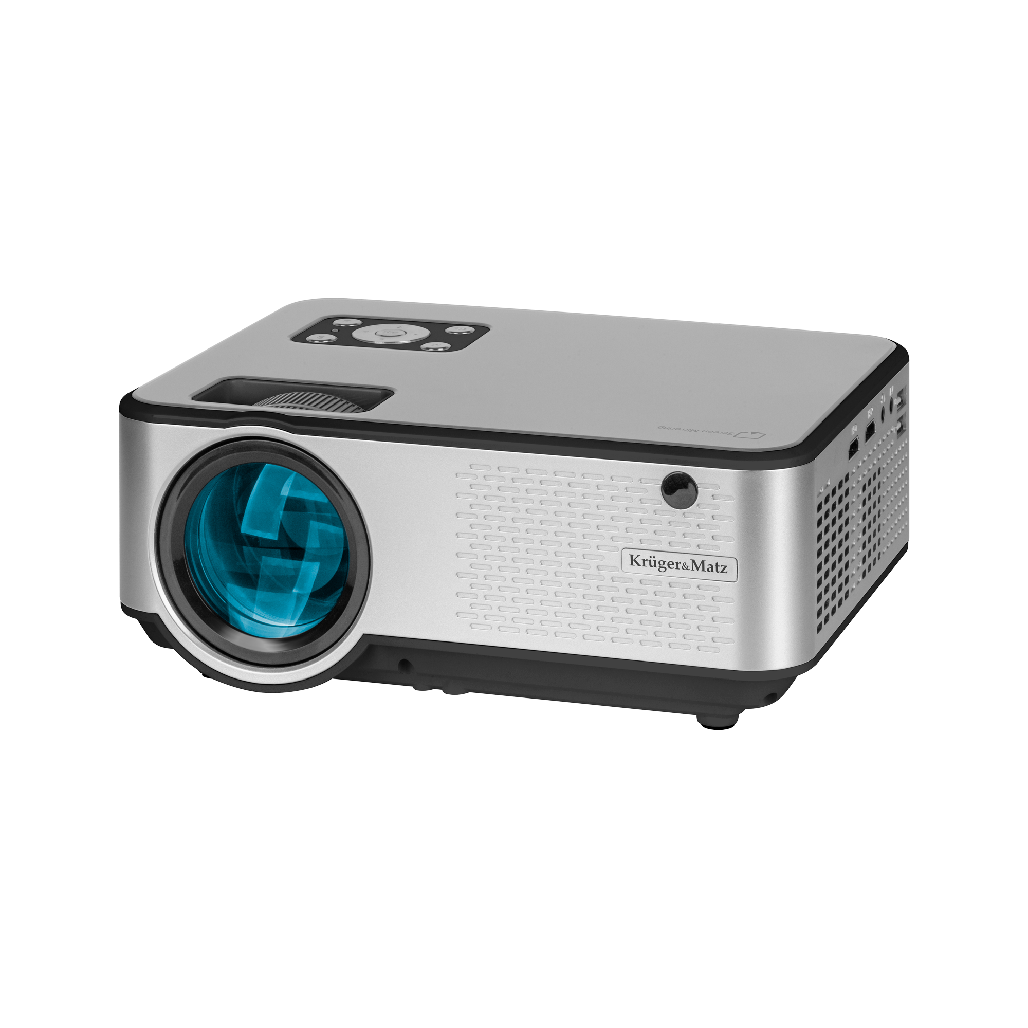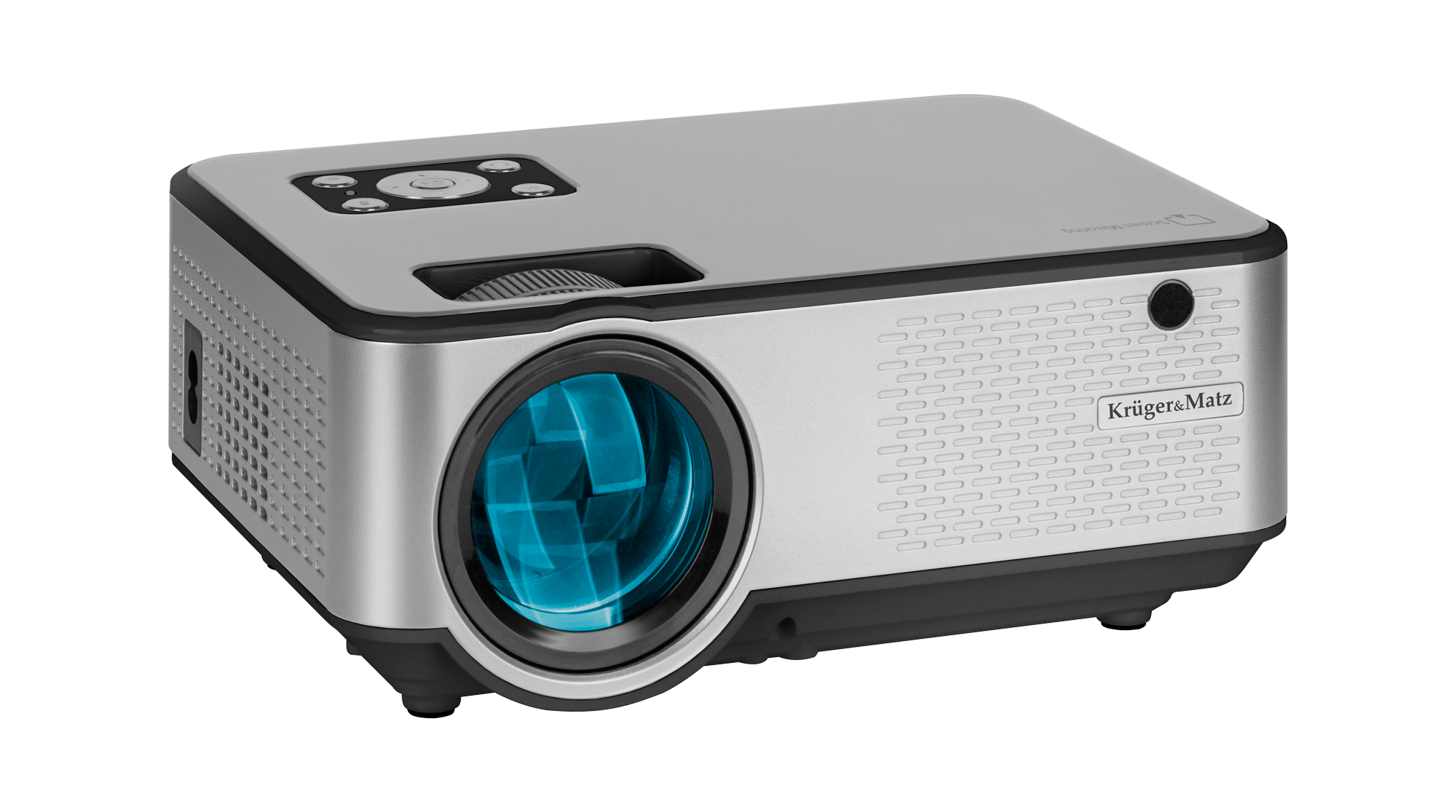 Projektor multimedialny LED Kruger&Matz został wyposażony w dwa pokrętła, którymi wygodnie dostosujesz ustawienia obrazu do własnych wymagań. Pierwszym ręcznie ustawisz ostrość, natomiast drugie pozwoli na korekcję zniekształceń trapezowych.