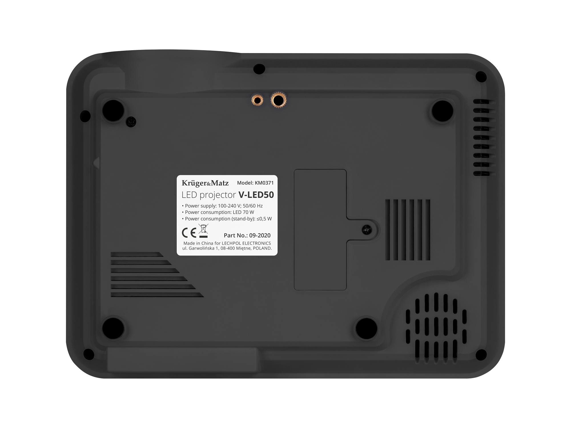 Nie masz miejsca na półce czy stoliku? To żaden problem! Na spodzie projektora Kruger&Matz V-LED50 znajdziesz dwa gwinty, które umożliwiają montaż projektora do tripoda lub uchwytu.