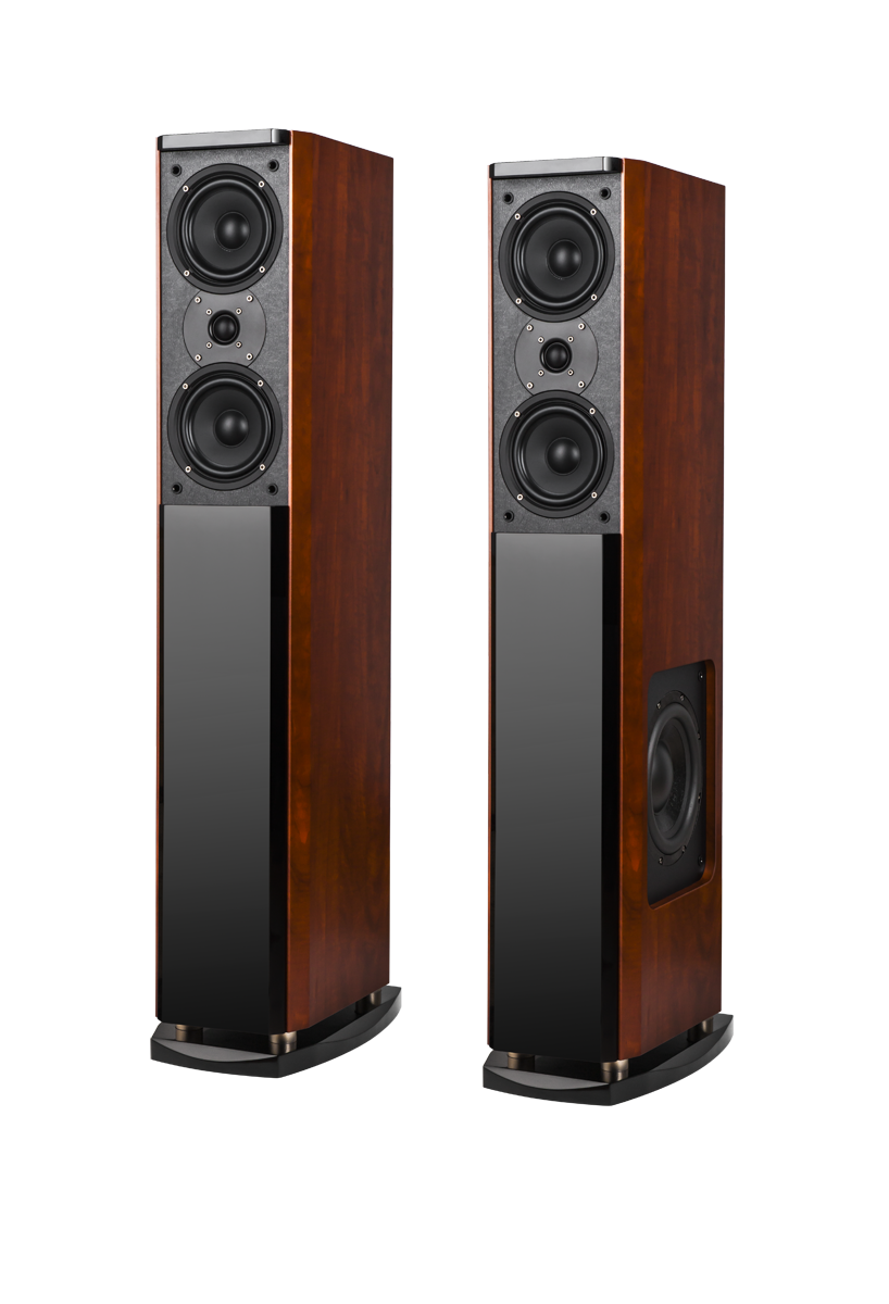 Głębokie i czyste brzmienie najniższych tonów zapewnia 8-calowy głośnik niskotonowy z celulozową membraną, o zasięgu basu do 36 Hz. Ogromną zaletą jest jego umiejscowienie - przetwornik został umieszczony w bocznej ścianie, dzięki czemu udało zachować się smukły kształt kolumn.