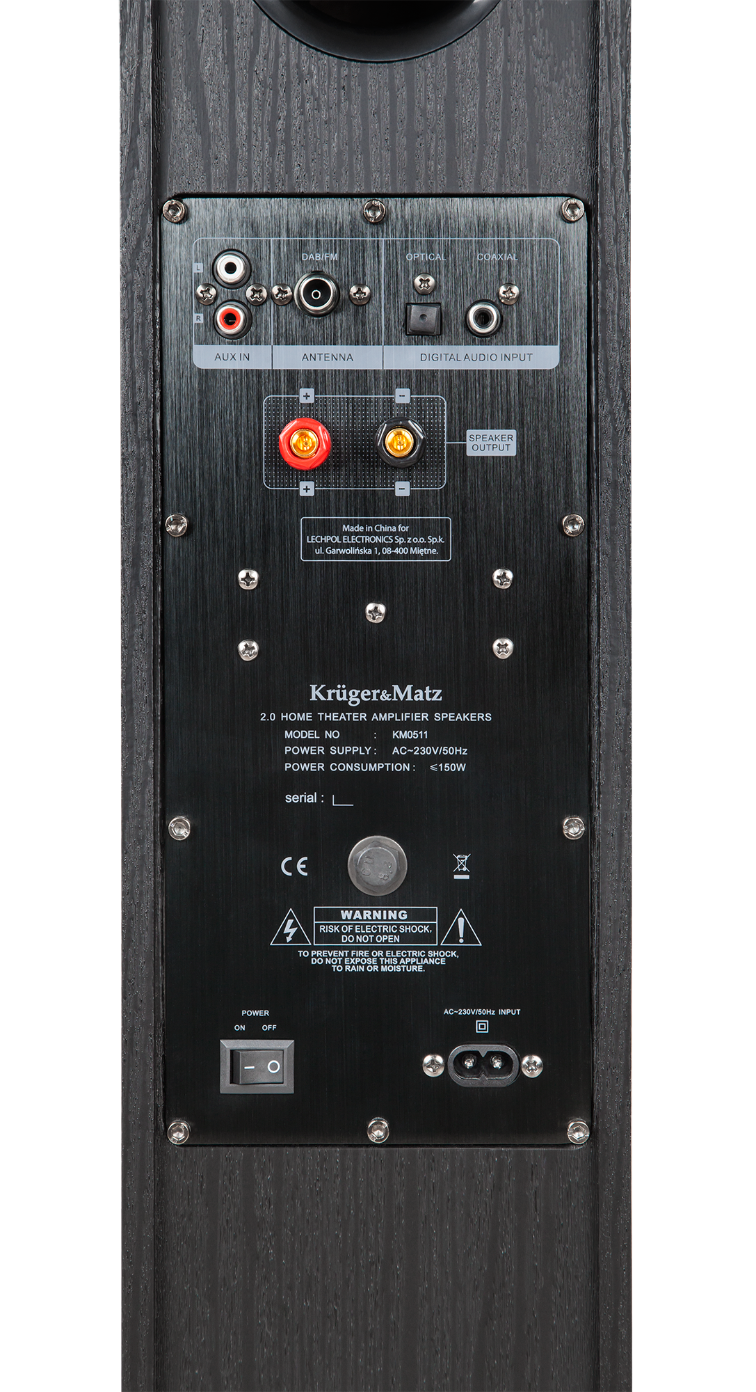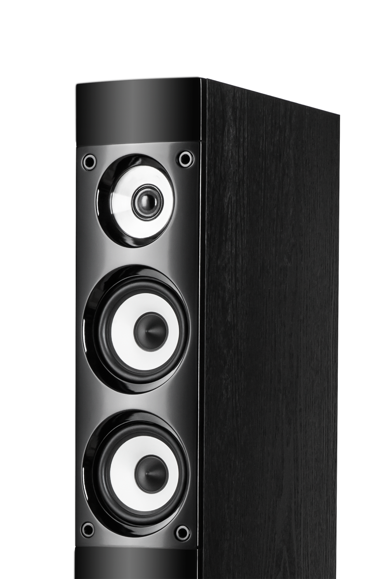 Zestaw składa się z dwóch 3-drożnych kolumn o mocy wyjściowej 2x 60 W. Na przodzie każdej z nich umieszczono dwa 4-calowe głośniki średniotonowe oraz 1-calowy głośnik wysokotonowy z neodymowym magnesem i membraną wykonaną z wysokiej jakości jedwabiu. Całości dopełnia 8-calowy głośnik basowy zapewniający wyjątkowo głębokie brzmienie. Fakt, że został on umieszczony z boku kolumny sprawia, że jest ona smukła.