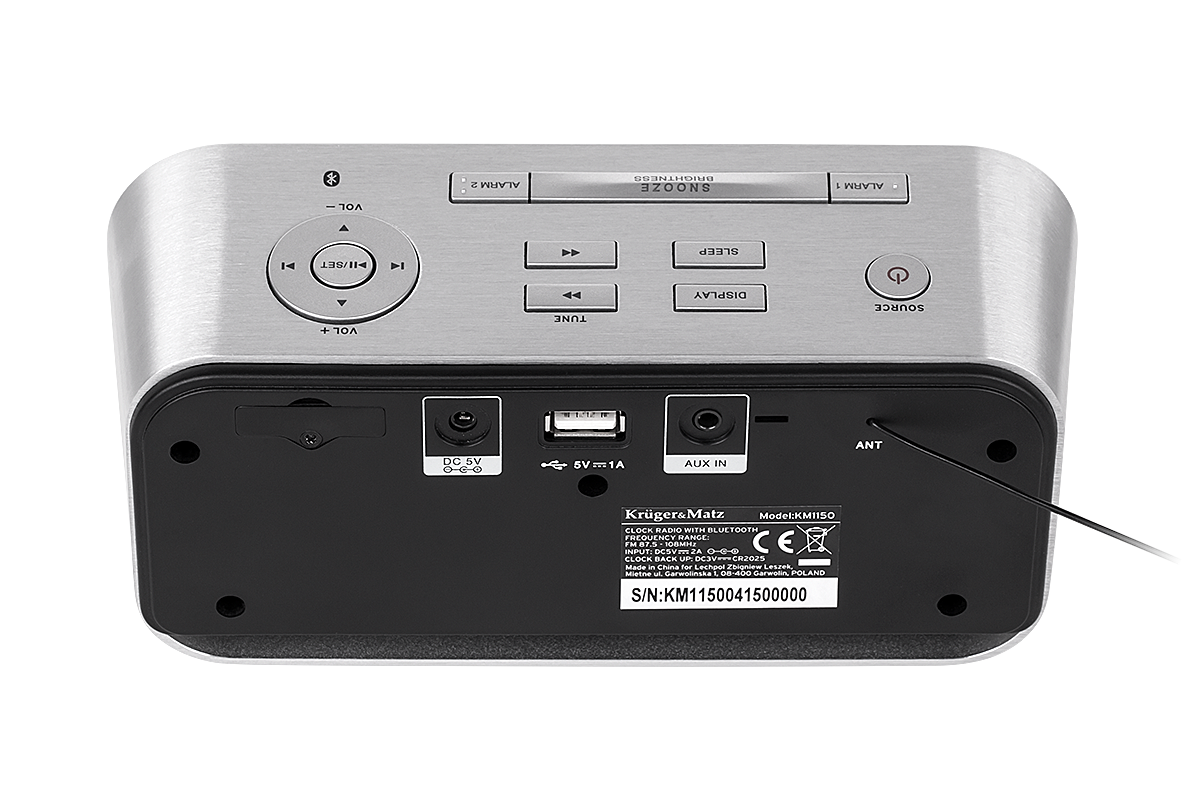 Urządzenie posiada wejście Aux-in, port USB oraz obsługuje łączność Bluetooth. Dzięki temu, jego funkcjonalność zadowoli nawet najbardziej wymagających użytkowników. Nowy radiobudzik Kruger&Matz zapewnia możliwość łączenia z urządzeniami zewnętrznymi i odtwarzanie z nich muzyki według własnych, indywidualnych potrzeb. W zależności od tego czy preferujesz łączność przewodową czy też nie, KM1150 jest do Twojej dyspozycji.