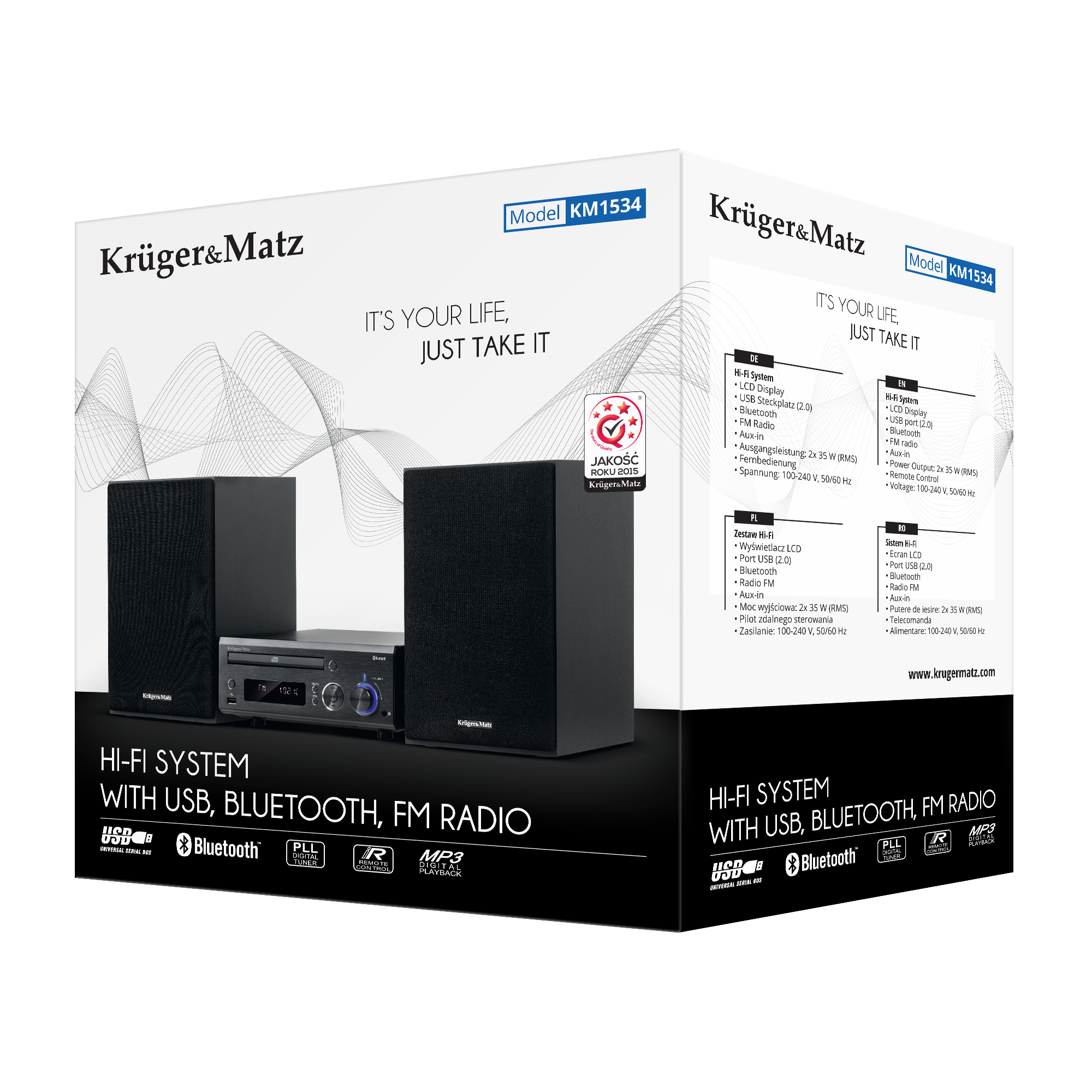 System audio KM 1534 zachwyca nie tylko dźwiękiem, ale niebanalnym designem. Został on zaprojektowany tak, aby idealnie wkomponować się w wystrój każdego wnętrza. Czerń głośników oraz jednostki centralnej, wykończonej szczotkowanym aluminium, sprawia, że urządzenie będzie świetnie prezentowało się zarówno we wnętrzach klasycznych, jak aranżowanych w bardziej nowoczesnym klimacie.