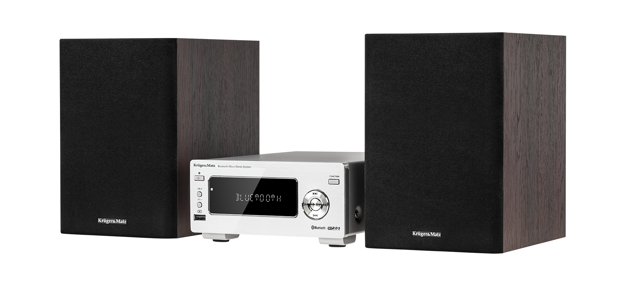 Odtwarzacz wykonany ze szczotkowanego aluminium, drewniane głośniki