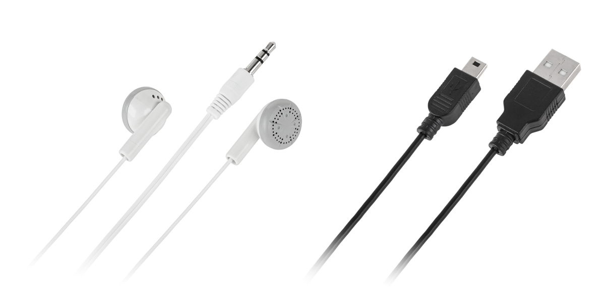 W zestawie: Odtwarzacz, słuchawki, kabel mini USB