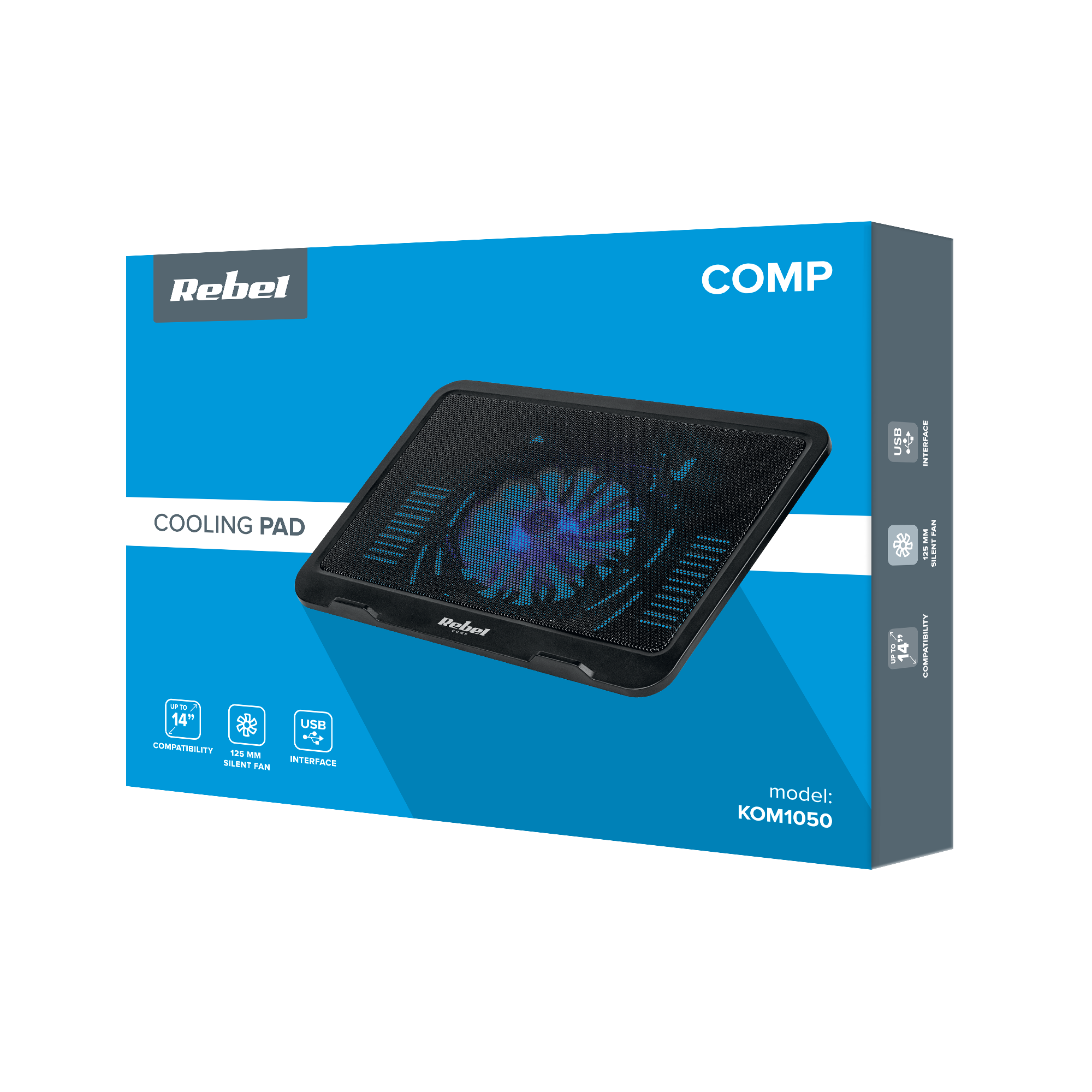 Podstawka pod laptopa z wentylatorem o średnicy 125 mm charakteryzuje się bardzo cichą pracą – poziom głośności to tylko 10 dB. Co ważne, akcesorium to zostało wyposażone w port USB, dlatego pomimo tego, że jest zasilana przez USB, nie zmniejszy funkcjonalności Twojego laptopa. Podkładka chłodząca z serii Rebel nie tylko przedłuży żywotność Twojego komputera, ale będzie także stanowiła doskonałe doposażenie Twojego biura pod względem estetycznym. Czarna, smukła konstrukcja została uzupełniona o niebieskie podświetlenie wentylatora, które nada podstawce nowoczesnego wyglądu.