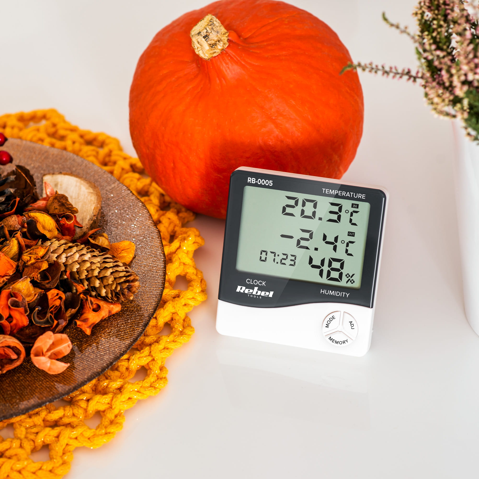 Zapomnij o klasycznym termometrze. Stacja pogody z serii Rebel Tools to urządzenie, które nie tylko wskaże temperaturę panującą w Twoim domu, ale także, dzięki specjalnemu czujnikowi zewnętrznemu, poinformuje Cię o warunkach panujących na dworze. Co więcej, to urządzenie umożliwi Ci także pomiar wilgotności wewnątrz pomieszczeń. Funkcja niezwykle istotna np. dla alergików, którzy muszą dbać o wysoką jakość powietrza w swoim mieszkaniu.