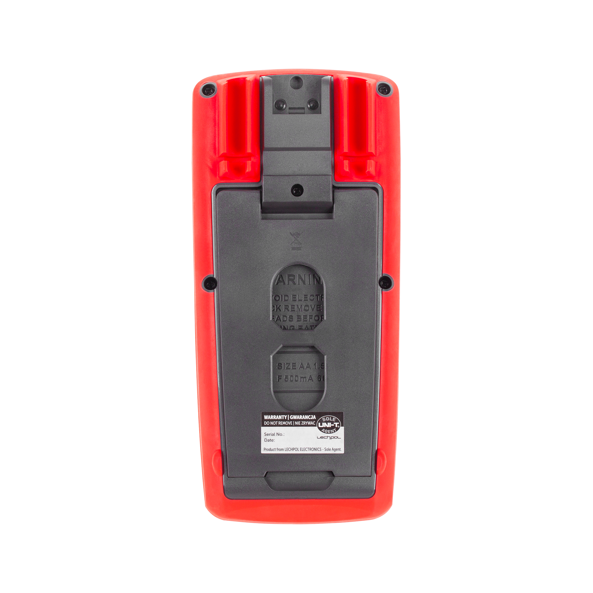 UT505A jest kompaktowy (103 x 225 x 59 mm) i lekki (630 g), co sprawia, że jest łatwy do przenoszenia i wygodny w użytkowaniu na miejscu pracy. Urządzenie jest zasilane sześcioma bateriami 1,5 V (LR6), co zapewnia długi czas pracy. W zestawie znajdują się niezbędne akcesoria, takie jak przewody pomiarowe, krokodylki pomiarowe oraz etui, co ułatwia przechowywanie i transport.