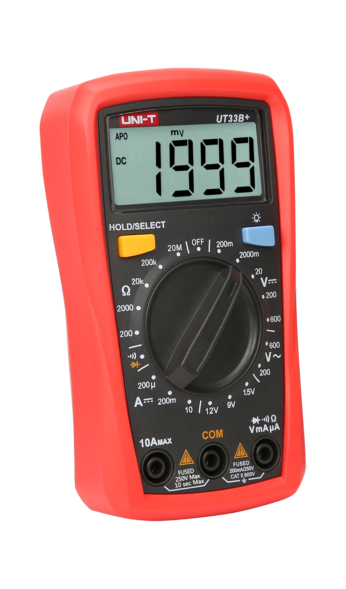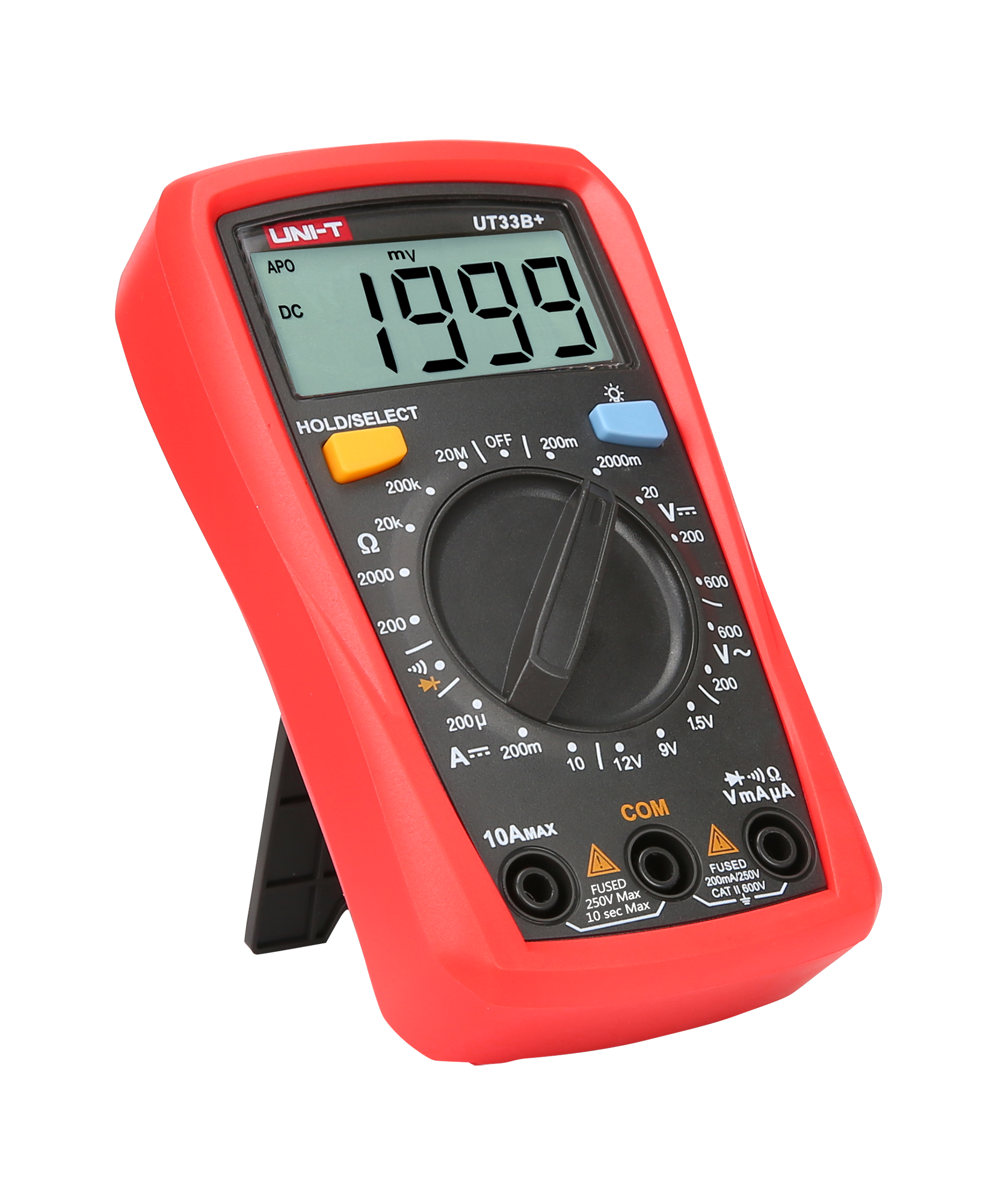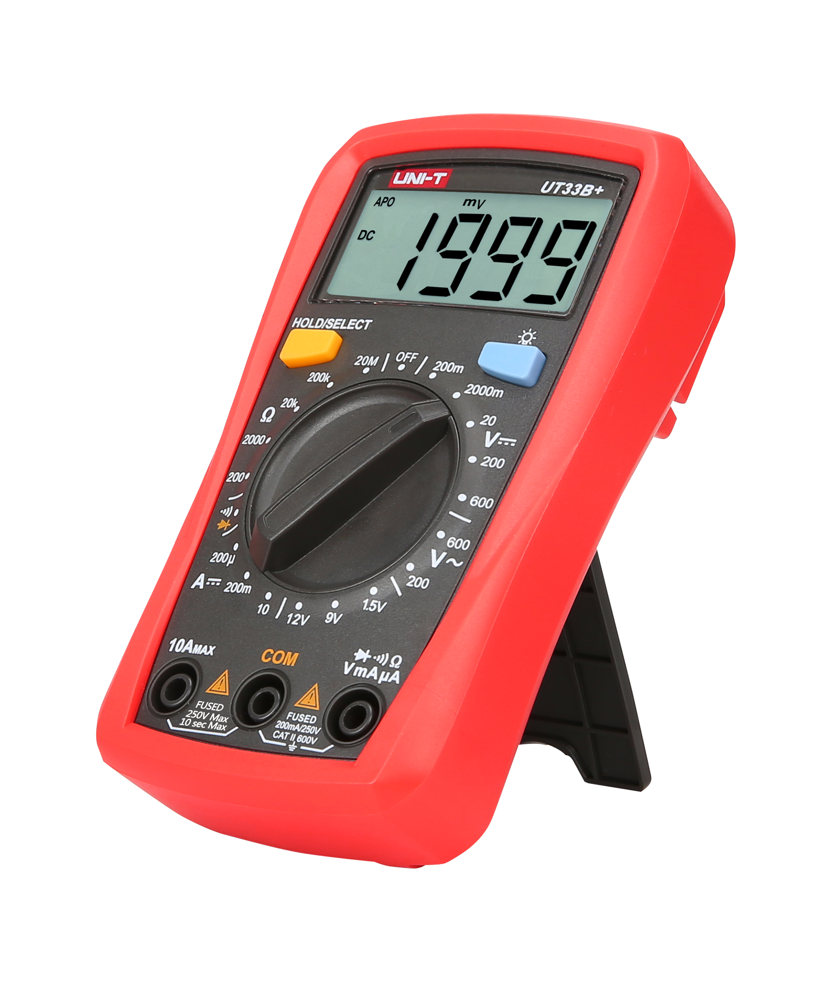 Natężenie prądu stałego DC: 200 µA / 200 mA / 10 A ±(1%+2)