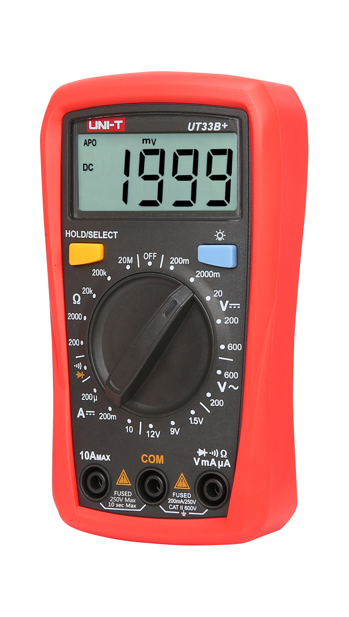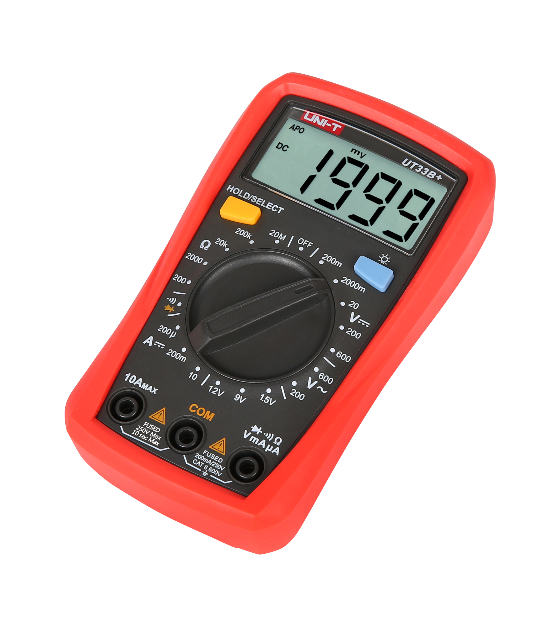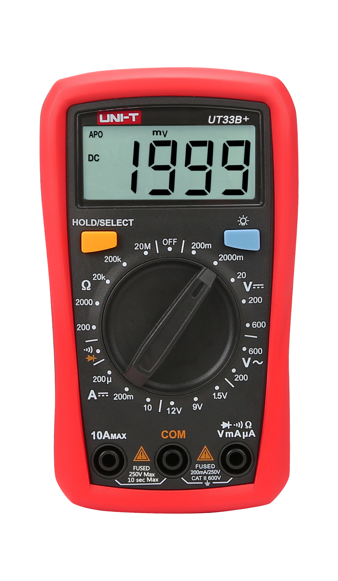 Natężenie prądu stałego DC: 200 µA / 200 mA / 10 A ±(1%+2)