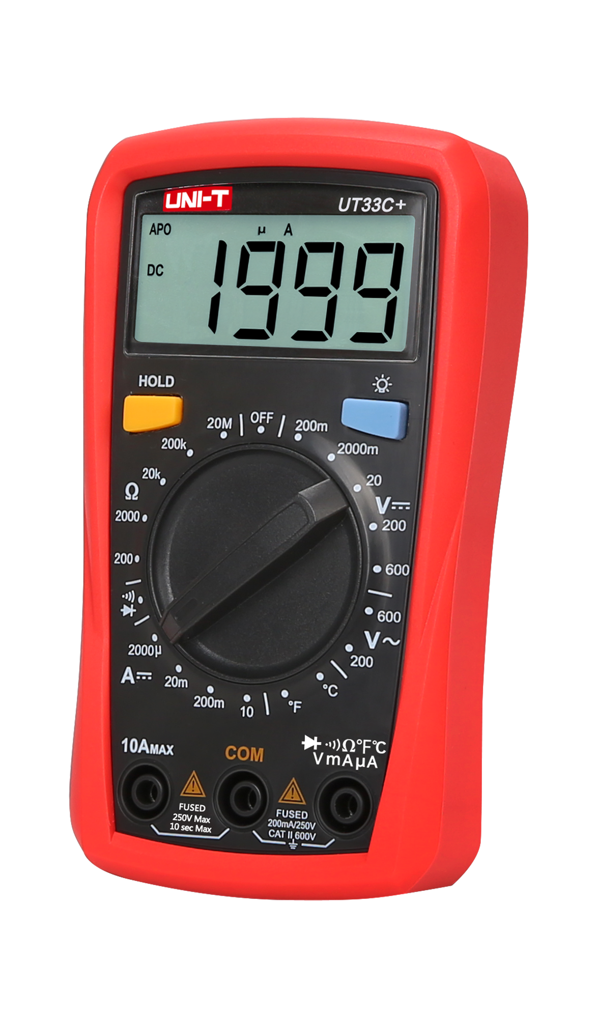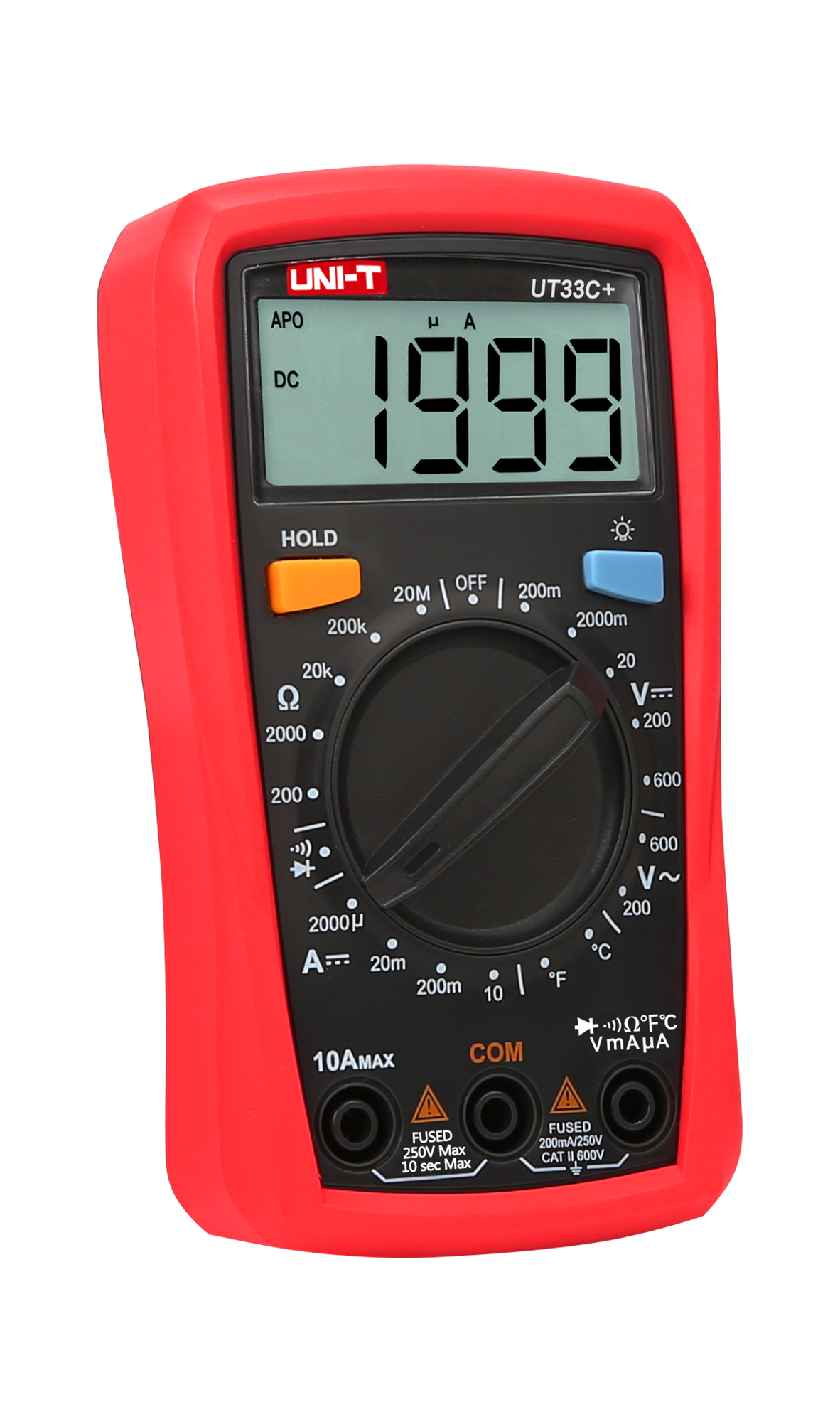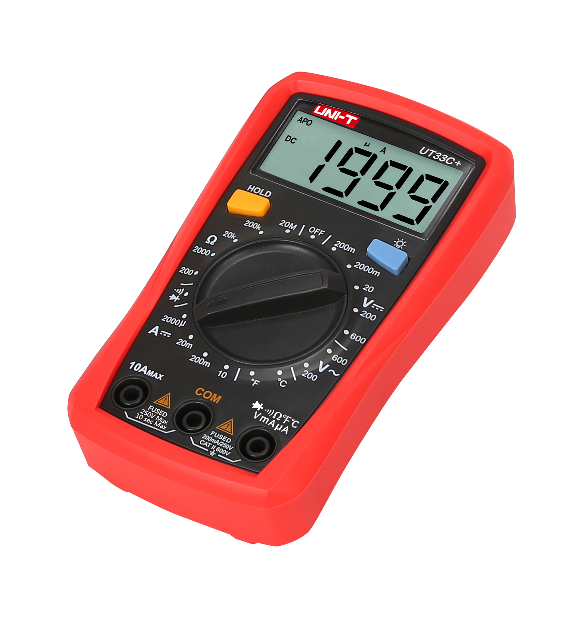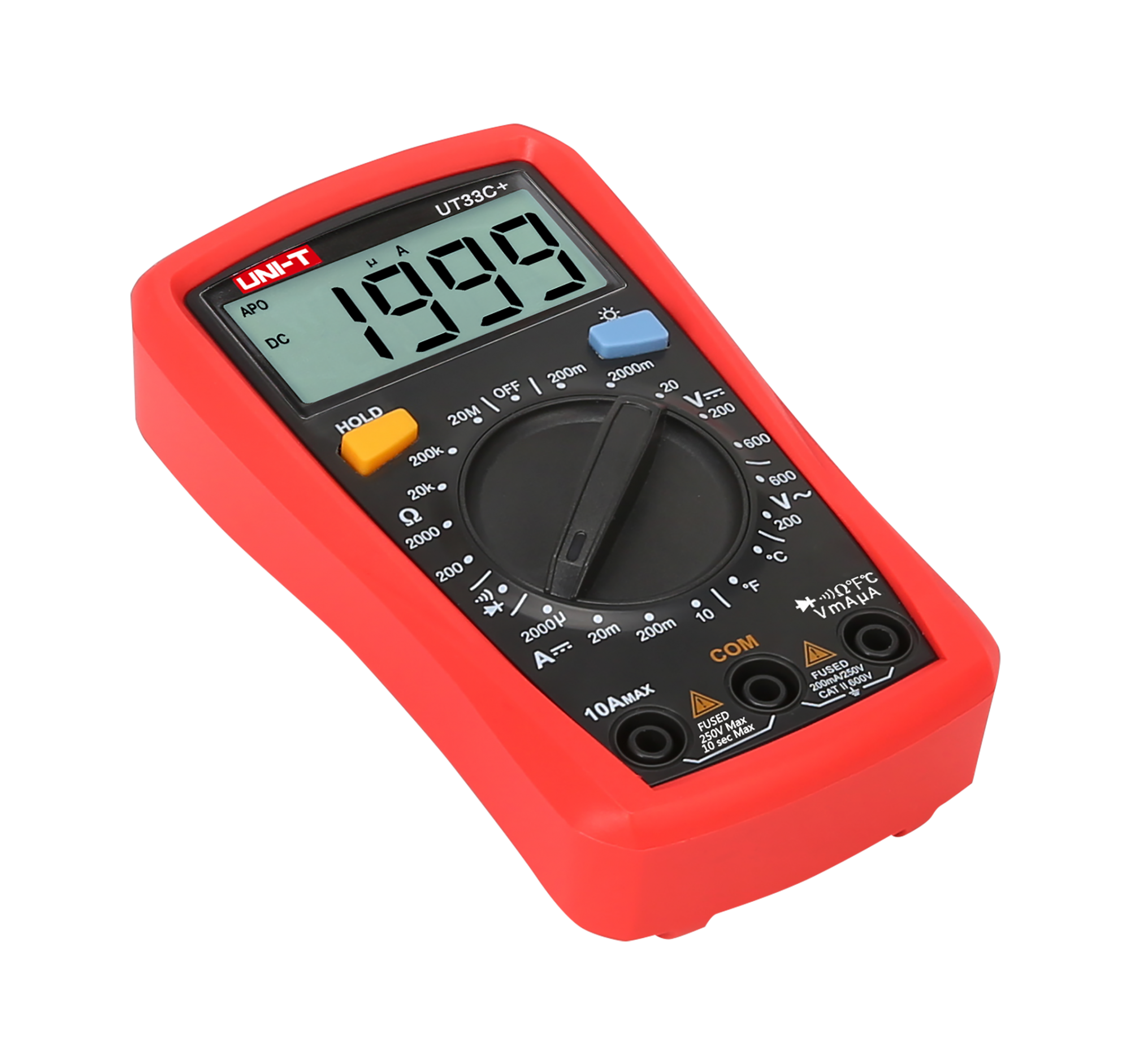 Natężenie prądu stałego DC: 2000 µA / 20 mA / 200 mA / 10 A ±(1%+2)