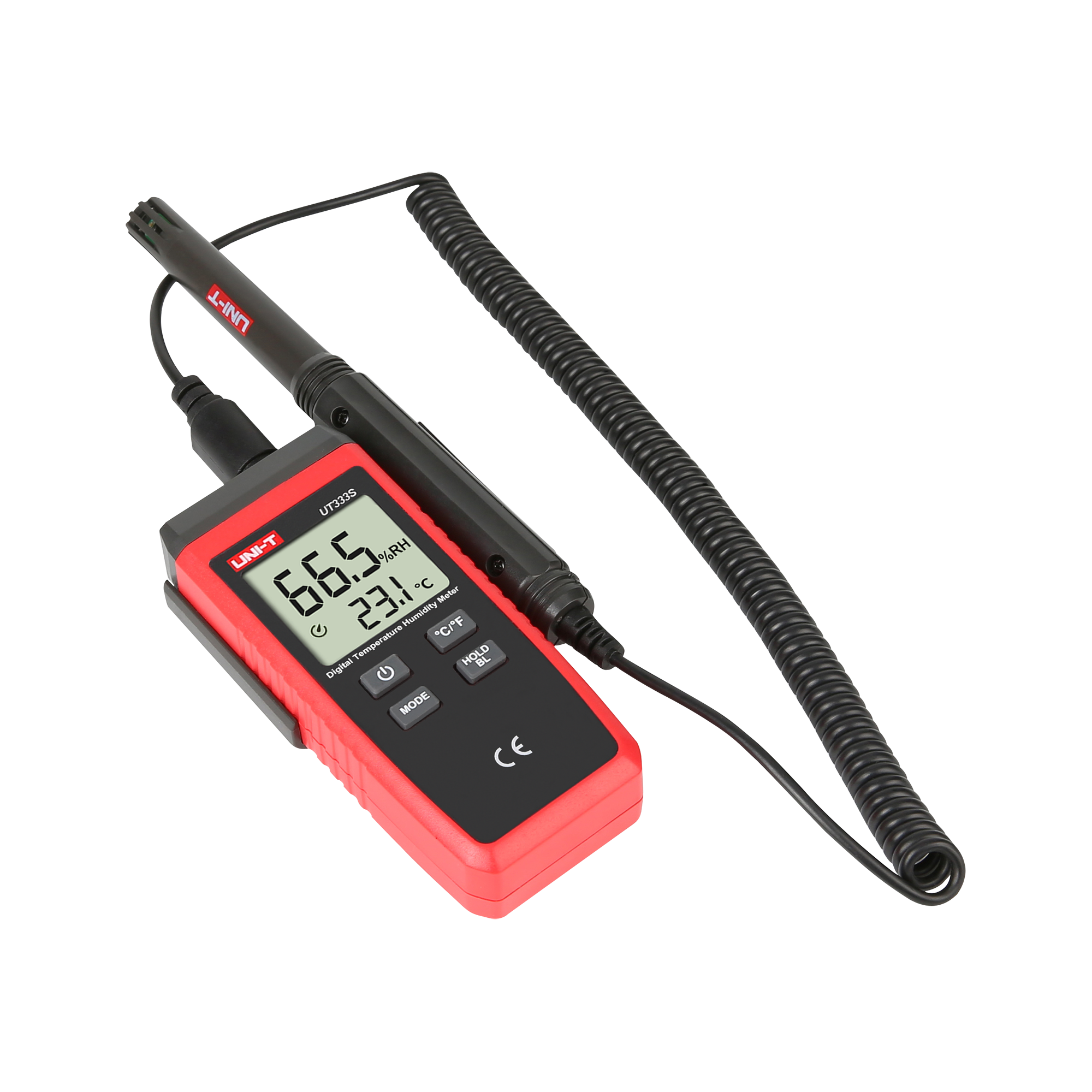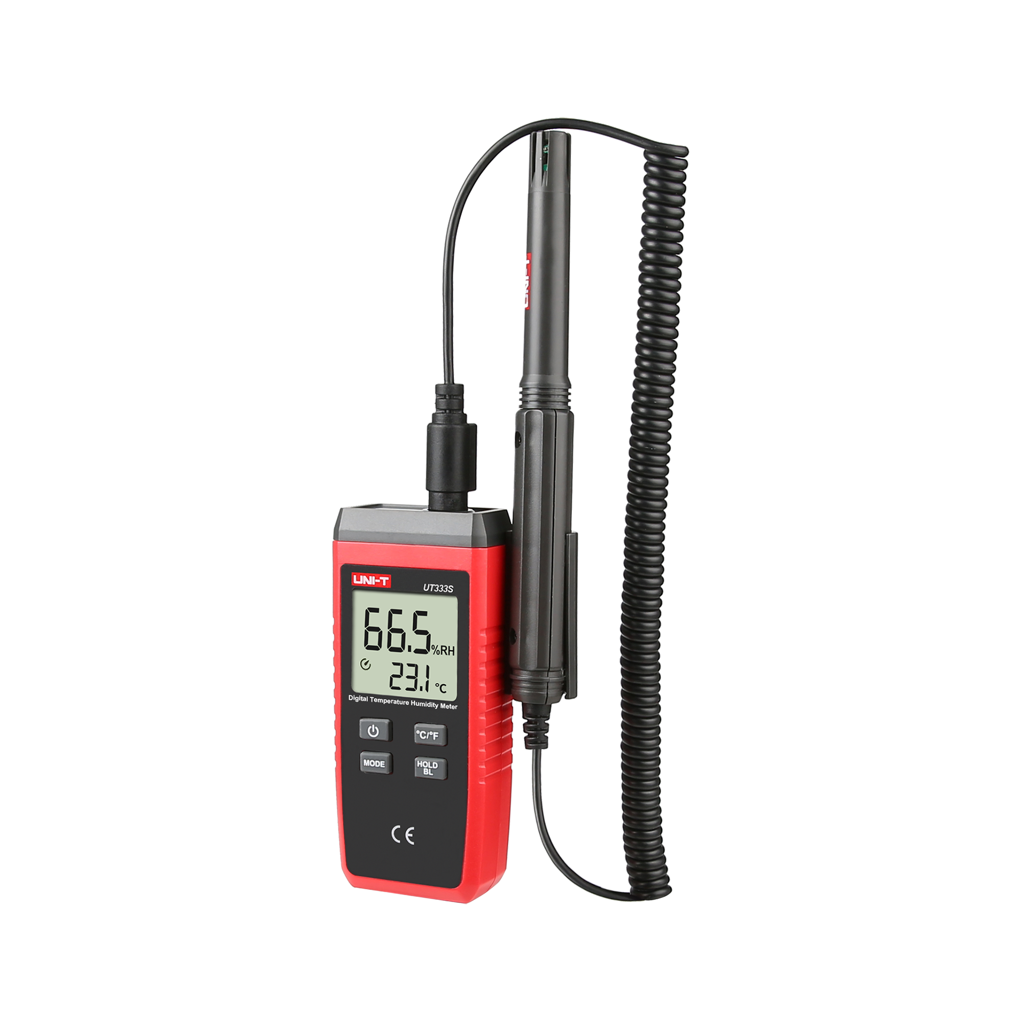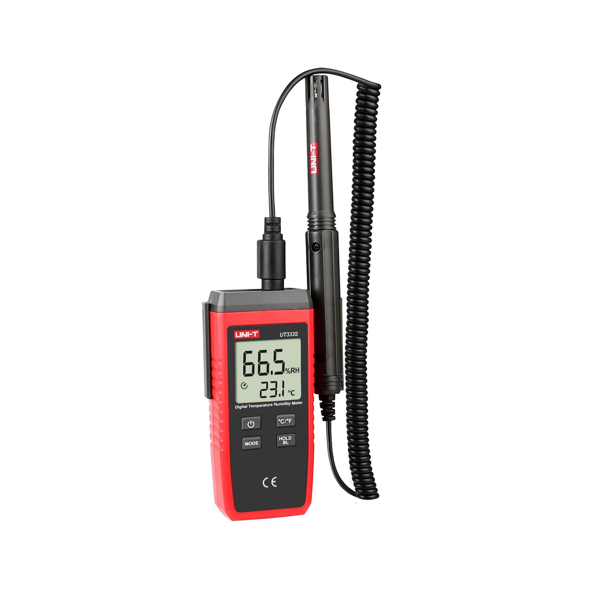 UT333S umożliwia dokładne pomiary temperatury w zakresie od -10°C do 60°C (14°F do 140°F) z rozdzielczością 0,1°C (0,2°F) i dokładnością ±1,0°C (±2,0°F). Miernik oferuje także pomiar wilgotności w pełnym zakresie od 0% do 100% RH, z rozdzielczością 0,1% RH i dokładnością ±5% w zakresie od 20% do 80% RH. Dzięki tym parametrom, urządzenie jest idealne do monitorowania zarówno temperatury, jak i wilgotności w różnych warunkach.