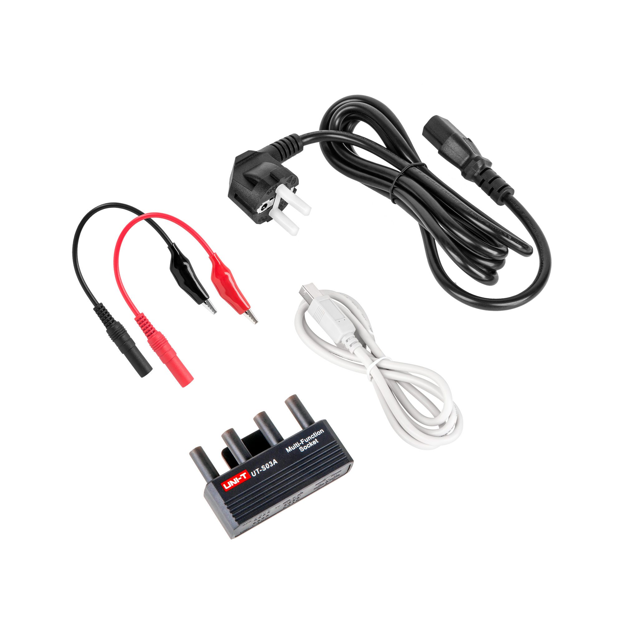 Akcesoria: Przewód sieciowy, przewód USB, przewody pomiarowe, krótkie przewody z krokodylkami, gniazdo wielofunkcyjne