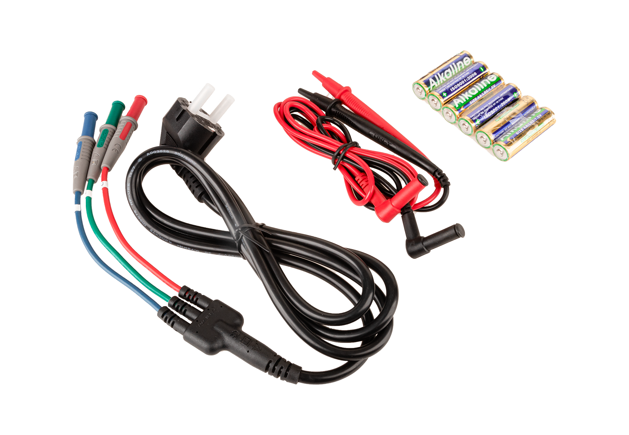 Akcesoria: bateria, 2 zestawy przewodów pomiarowych, pasek, etui
