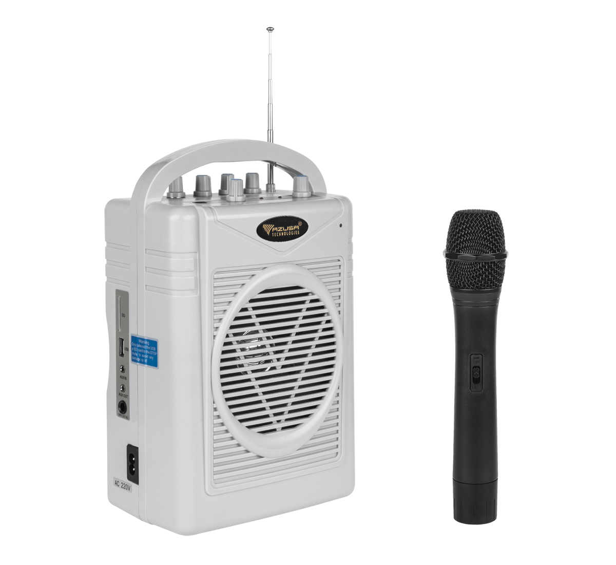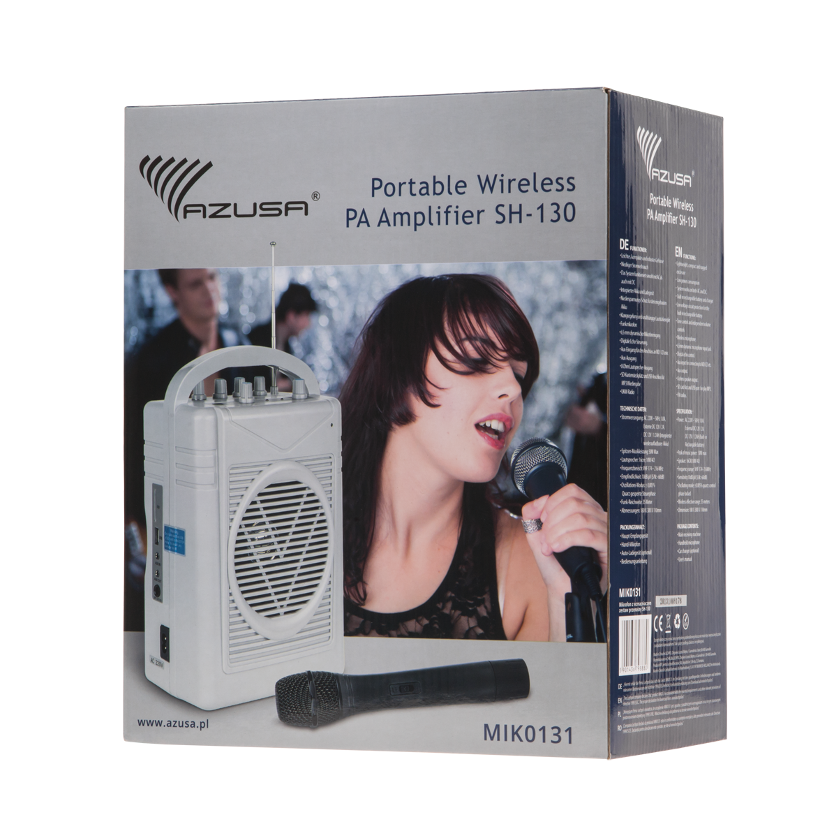 Mikrofon z wzmacniaczem AZUSA SH-130 to przenośny i lekki zestaw nagłośnieniowy, który doskonale sprawdzi się podczas wycieczek, prezentacji oraz innych zorganizowanych wydarzeń. Dzięki kompaktowym wymiarom i niskiej wadze, urządzenie jest niezwykle poręczne i łatwe w transporcie, co czyni je idealnym wyborem dla osób potrzebujących mobilnego systemu nagłośnieniowego.