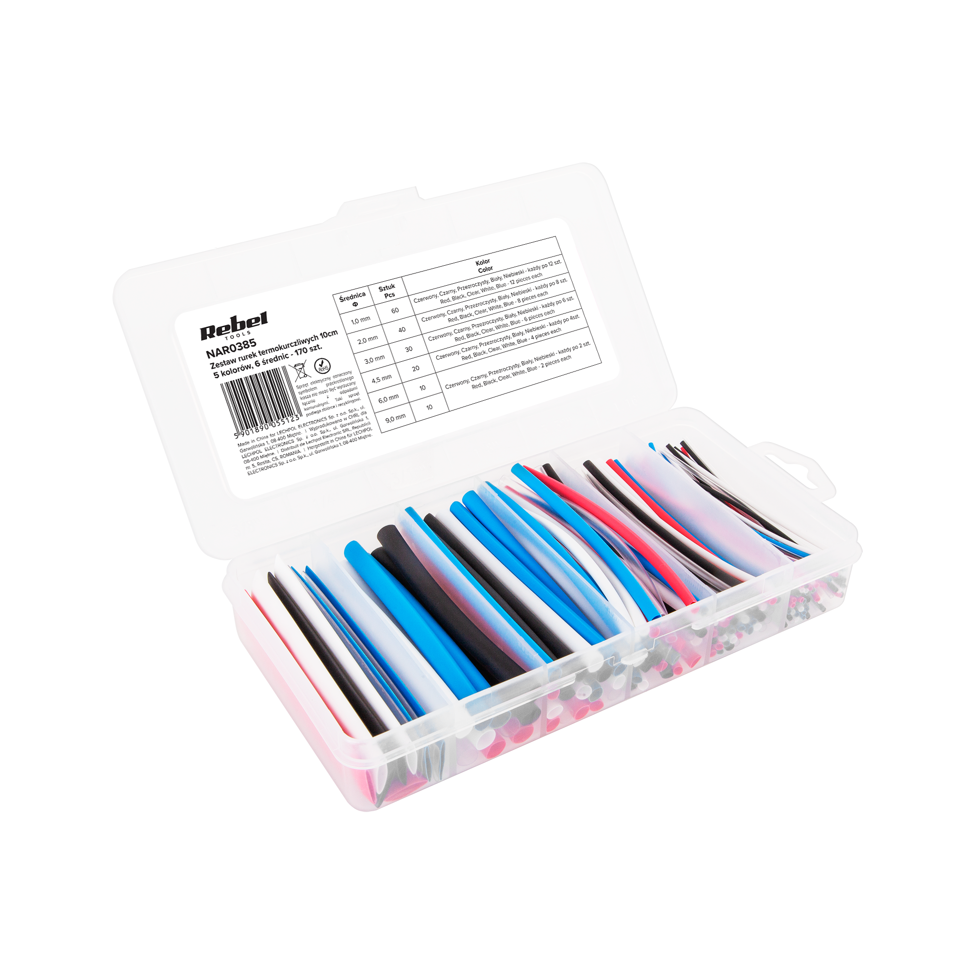 Zestaw rurek termokurczliwych 10cm - 5 kolorów, 6 średnic- 170 szt.