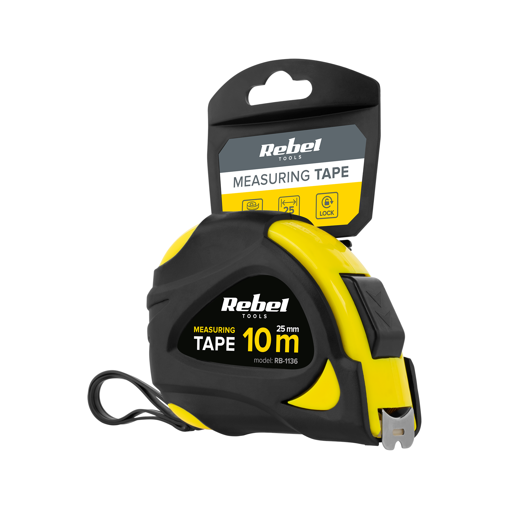 Taśma miernicza Rebel o zasięgu 10 m wykonana została ze stali, co w połączeniu z solidną obudową z tworzywa sztucznego gwarantuje dużą żywotność i odporność na uderzenia i inne uszkodzenia. Zaczep mierniczy oraz przycisk blokady, w połączeniu z dużą szerokością przyrządu (25 mm), ułatwiają dokładny pomiar dużych odległości bez podparcia, dzięki czemu samodzielnie poradzisz sobie z pomiarem niemal w każdej sytuacji.