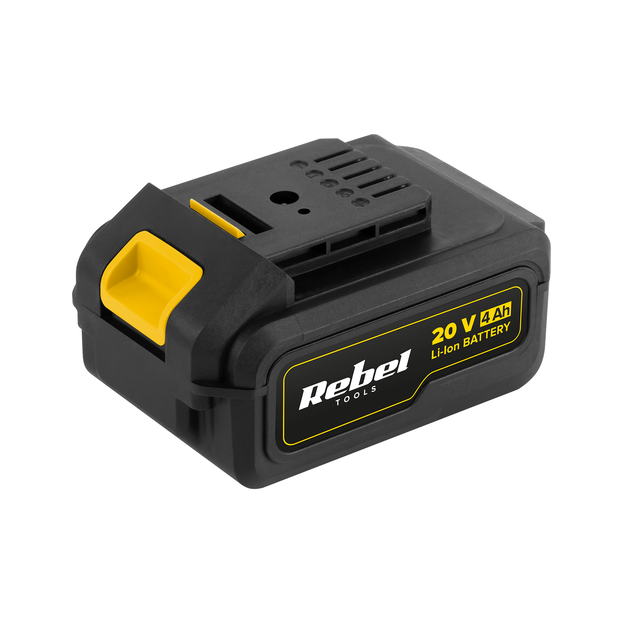Aby Twoja praca trwała dłużej, bez konieczności robienia przerw na ładowanie baterii, w ofercie Rebel Tools znajdziesz także dedykowany akumulator 20 V, 4 Ah, który skutecznie wydłuży czas pracy wielu urządzeń, np. wiertarko-wkretarki, dmuchawy, nożyc i podkaszarki, a także wyrzynarki i kompresora. Dodatkowy akumulator to doskonały zastępca w czasie, gdy Twoja dołączona do urządzenia bateria właśnie się ładuje. Dzięki niemu możesz jeszcze bardziej zaangażować się w przydomowe prace.