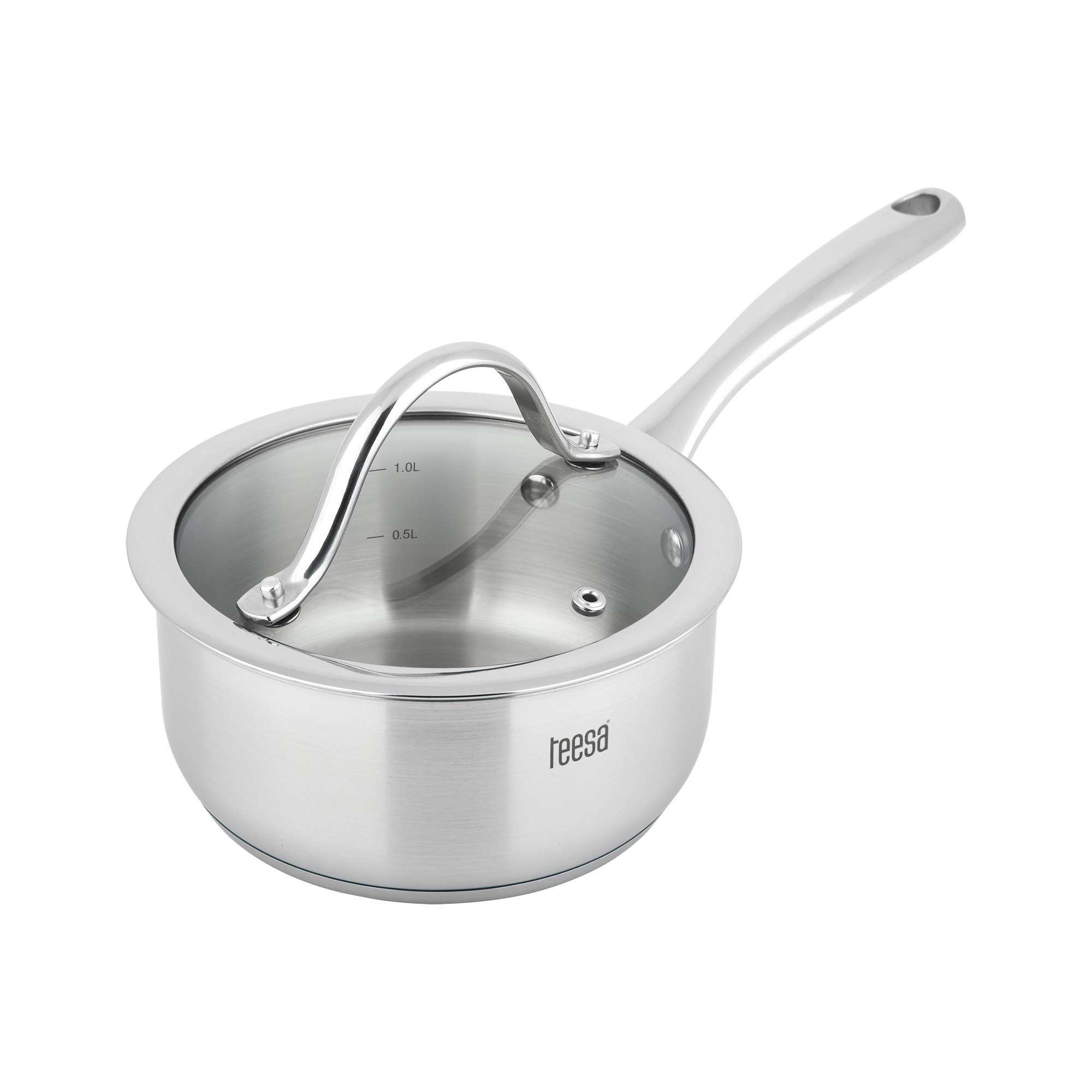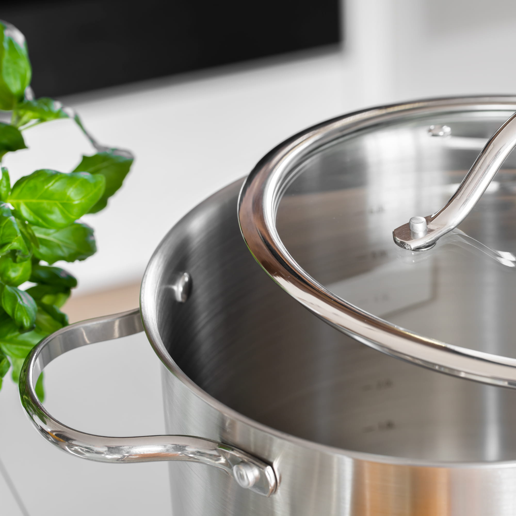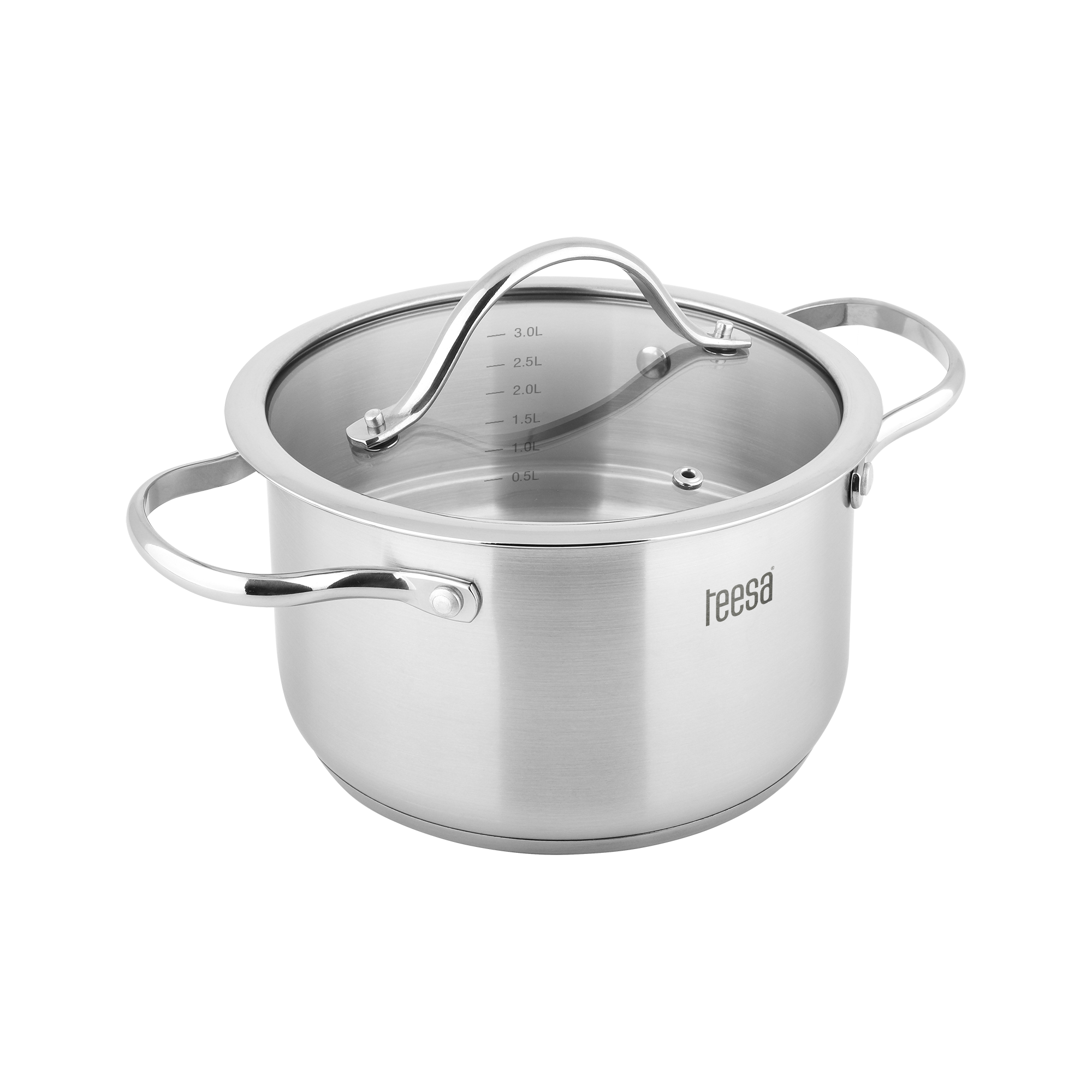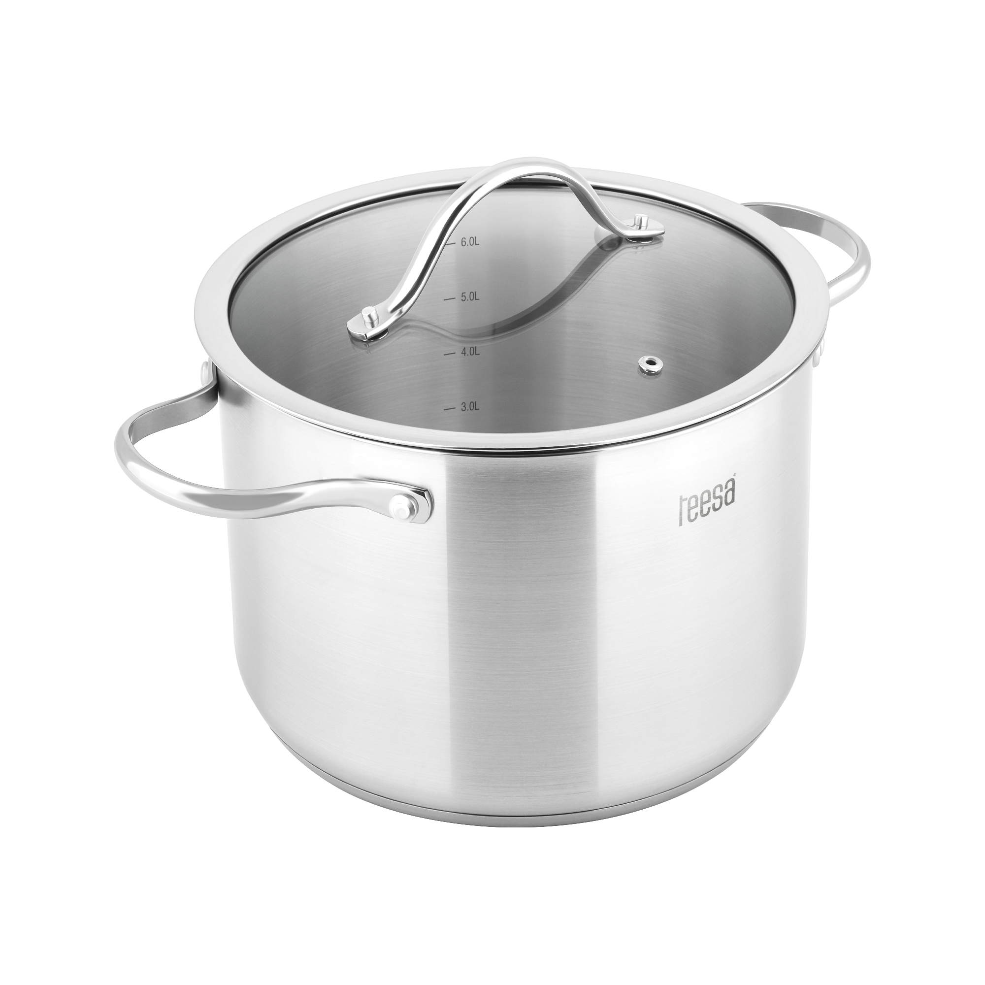 Garnki stalowe Teesa wyposażone zostały w praktyczną podziałkę litrażową. Zamieszczona po wewnętrznej stronie miarka ułatwi odmierzanie odpowiednich proporcji dodawanych składników przyrządzanego dania.