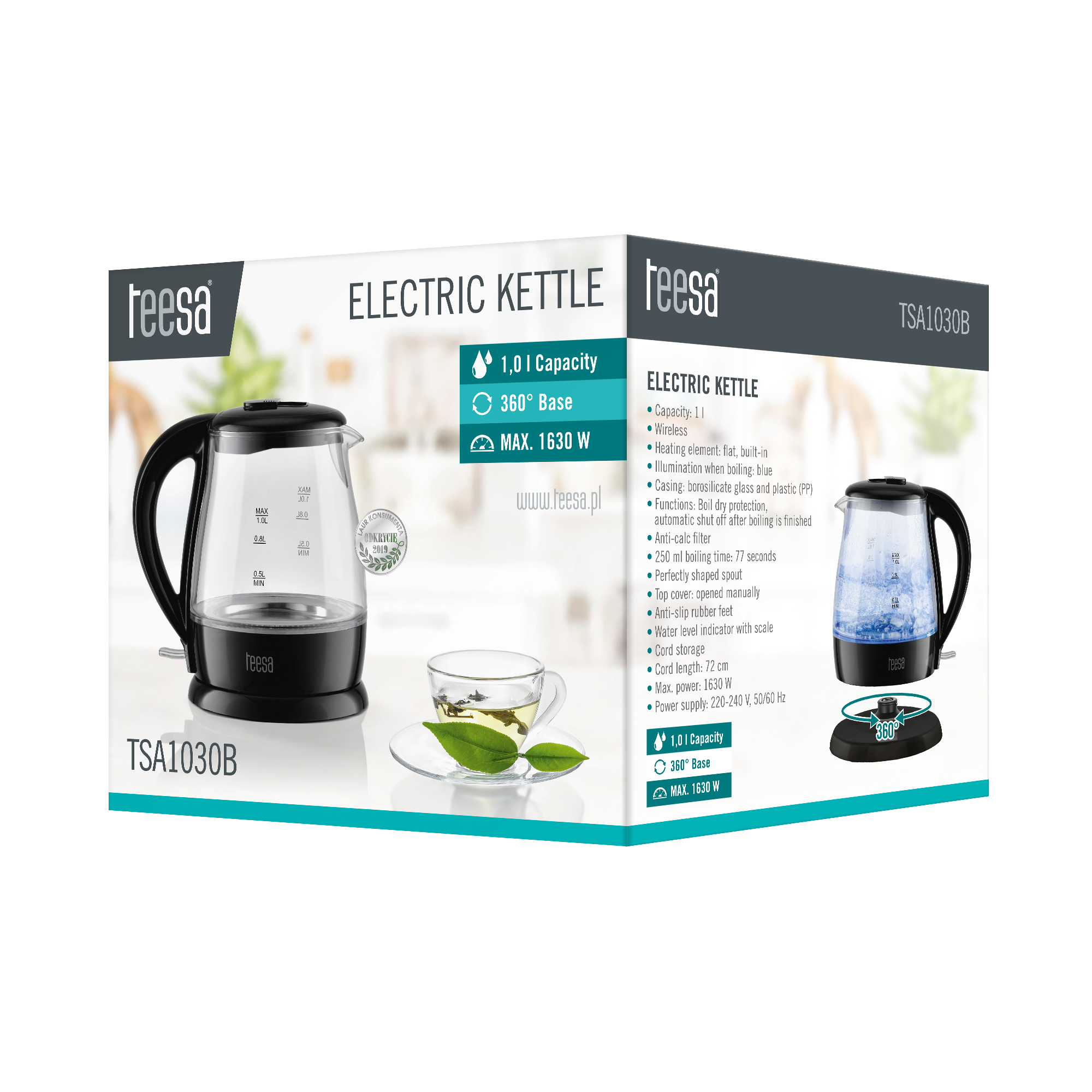 To, co wyróżnia czajnik elektryczny Teesa, to wykorzystanie trwałego i odpornego na zabrudzenia szkła borokrzemianowego, którego dopełnieniem są elementy wykonane z wysokiej jakości plastiku. Moc maksymalna 1630 W oraz płaska grzałka płytowa pozwalają na szybkie zagotowanie wody.