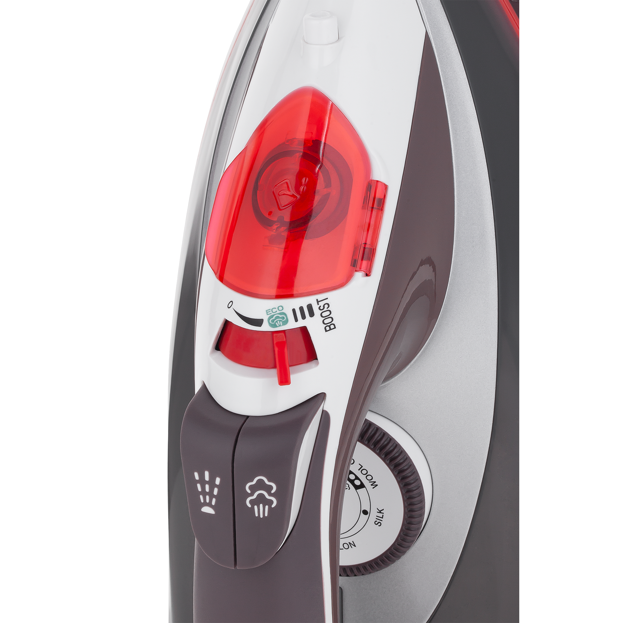 Żelazko Teesa Slide Precision 3000 posiada także 3-stopniową regulację ciągłego strumienia pary. Jeśli jednak najwyższy stopień – BOOST - nie usunie wszystkich zagnieceń, skorzystaj z dodatkowej funkcji wyrzutu pary.