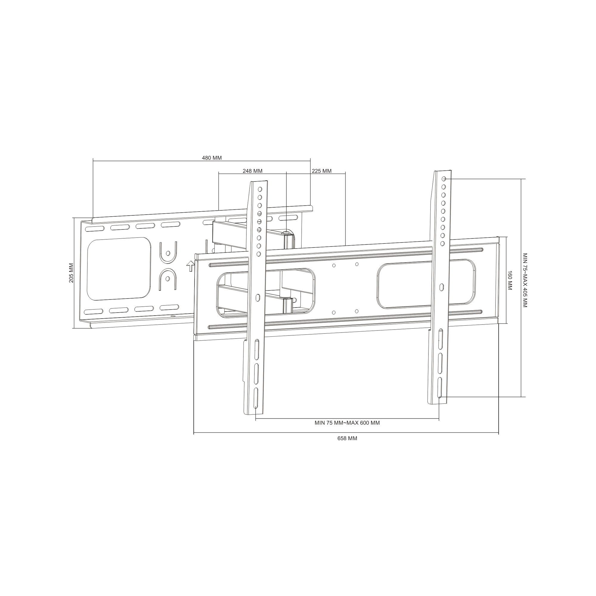 Innowacyjna konstrukcja uchwytu oferuje regulację w pionie w zakresie od -10° do +20°, a także regulację w poziomie od -90° do +90°, co pozwala na precyzyjne dostosowanie kąta oglądania do własnych potrzeb. Dodatkowo, możliwość ustawienia odległości od ściany w zakresie od 60 do 473 mm zapewnia optymalne dopasowanie do każdego wnętrza, umożliwiając jednocześnie efektywne zarządzanie przestrzenią.
