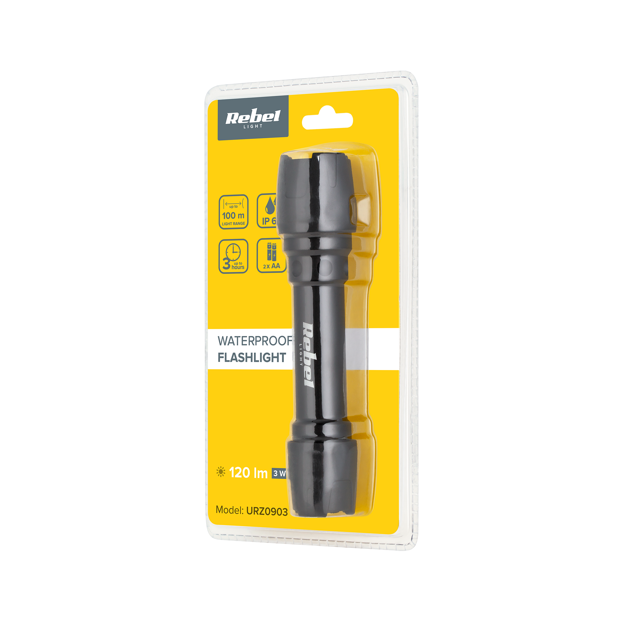Wyposażona w diodę LED o mocy 3 W, latarka generuje strumień światła o sile 120 lumenów, co zapewnia jasne i wyraźne oświetlenie na dystansie do 100 metrów. Czas pracy do 3 godzin na dwóch bateriach AA (nie dołączonych do zestawu) pozwala na długie użytkowanie bez potrzeby częstego ładowania.