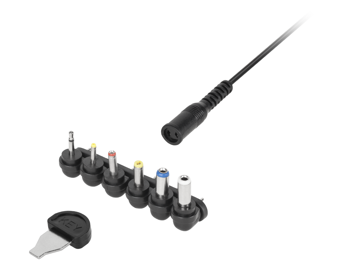 Wraz z zasilaczem otrzymujesz sześć uniwersalnych wtyczek DC: 3,5x1,35 / 5,5x2,1 / 5,5x2,5 / 2,35x0,7 / 4,0x1,7 / 2,5 mono. To ogromna zaleta, która umożliwia podłączenie zasilacza do wielu różnych urządzeń, co pozwala Ci cieszyć się jednym, wszechstronnym zasilaczem.