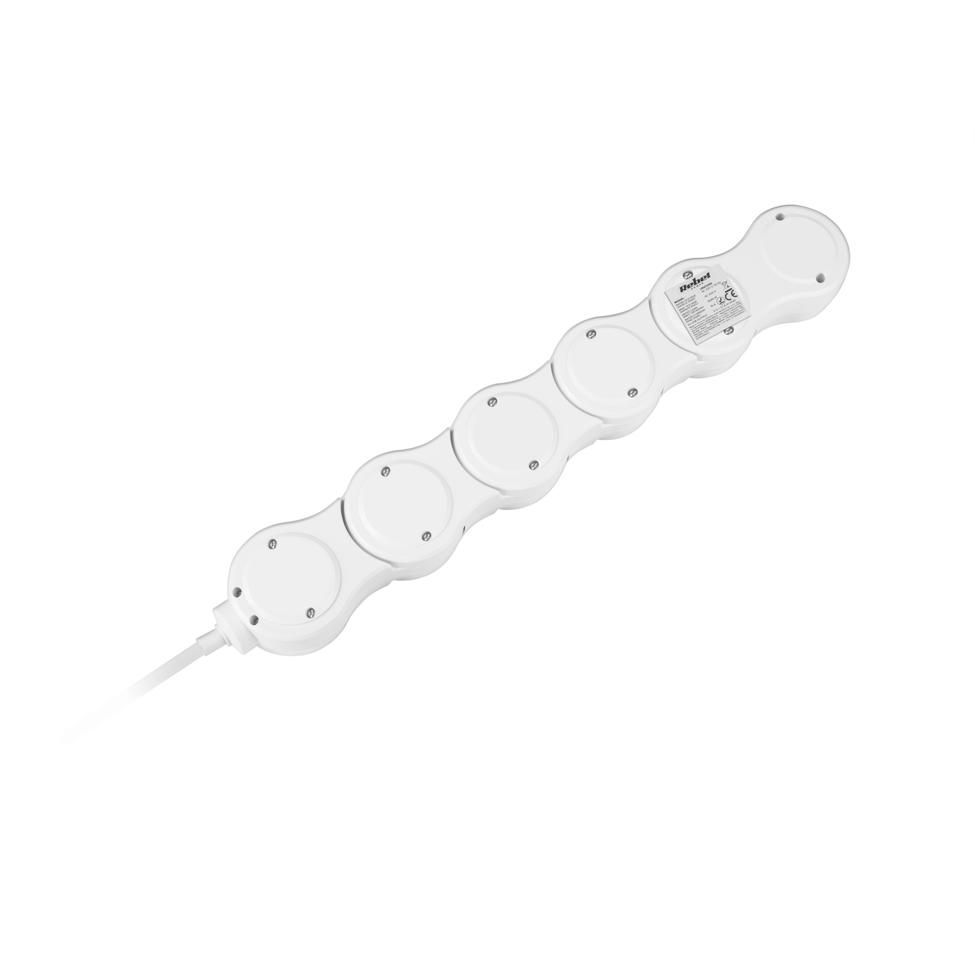 Przedłużacz sieciowy Rebel to praktyczne rozwiązanie do zasilania wielu urządzeń jednocześnie, zarówno w domu, jak i w biurze. Dzięki pięciu gniazdom sieciowym i dwóm portom USB, oferuje dużą wszechstronność i wygodę użytkowania.