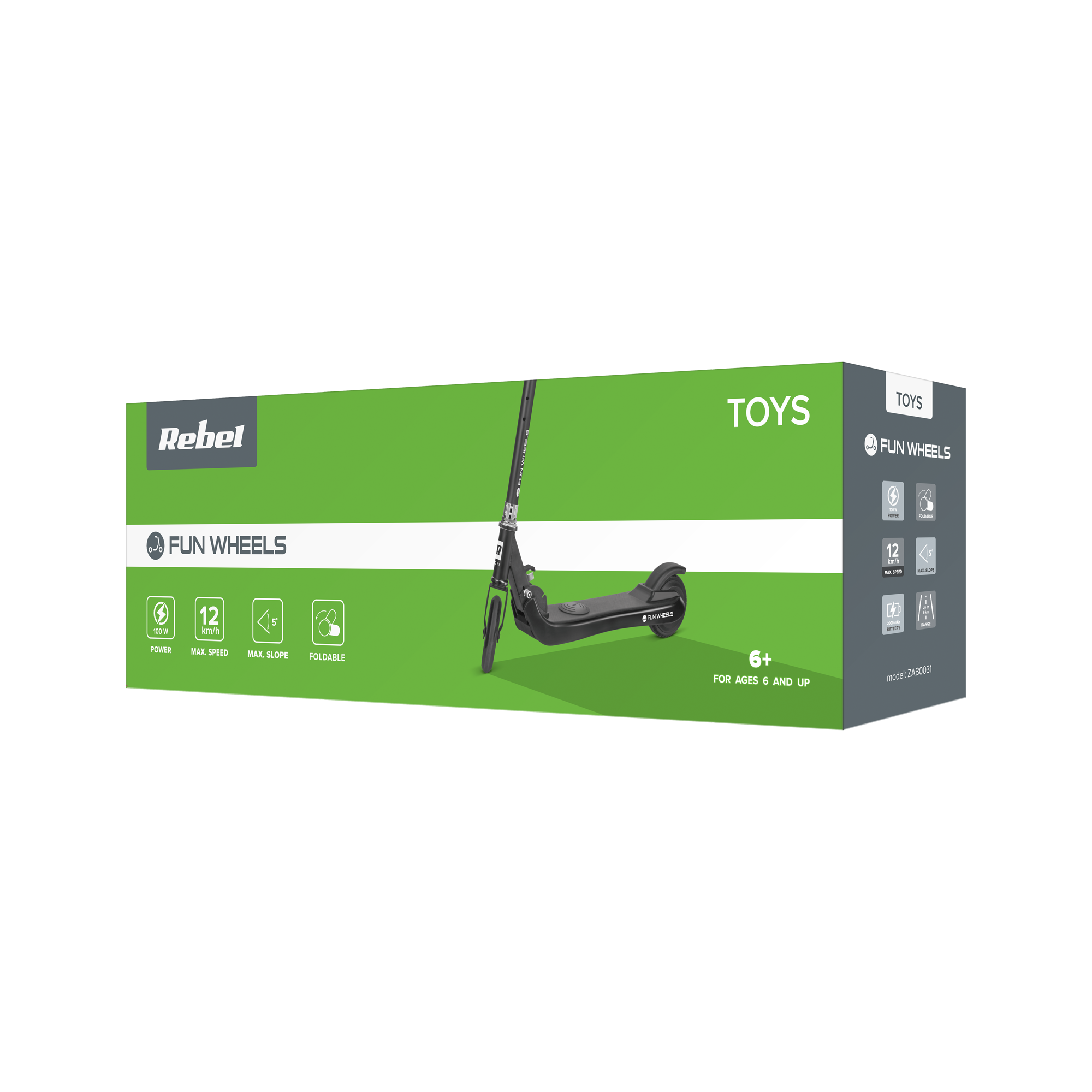 Twojemu dziecku marzy się hulajnoga elektryczna, ale Ty nie jesteś przekonany do pomysłu? Idealnym wyborem na początek będzie model Rebel Fun Wheels, z którego mogą korzystać dzieci od 6. roku życia. Maksymalna prędkość pojazdu to 12 km/h. To wystarczająco dużo, aby zapewnić dużo frajdy z jazdy, a jednocześnie zadbać o bezpieczeństwo. Warto wspomnieć, że maksymalne obciążenie Fun Wheels to 50 kg, dlatego hulajnoga ta posłuży przez długi czas – także starszym dzieciom.
