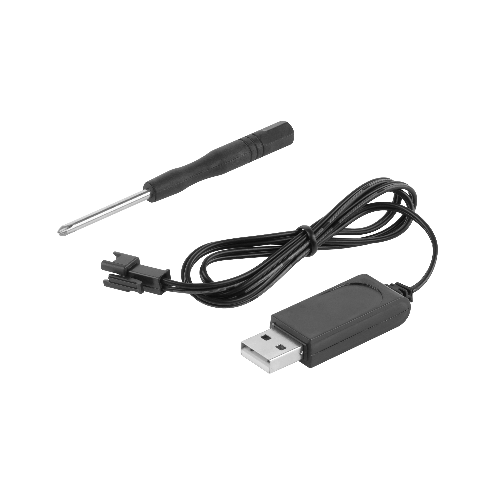 W zestawie: pilot, akumulator, kabel ładujący USB, śrubokręt, instrukcja obsługi