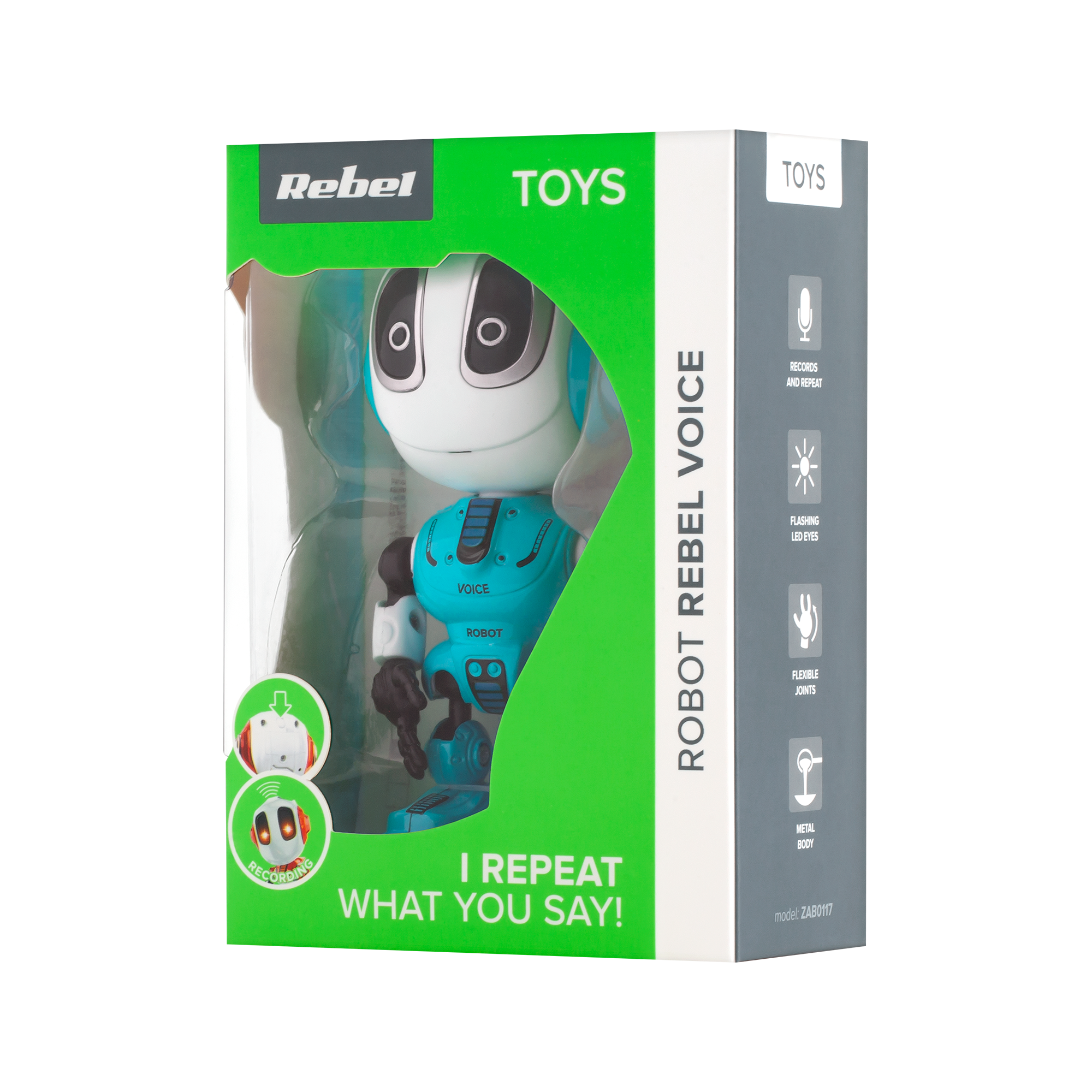 Podaruj swojemu dziecku nowego przyjaciela! Rebel Voice to robot zabawka, która zapewnia kreatywną zabawę! Ta interaktywna zabawka potrafi słuchać, a następnie powtarza, to co usłyszy, śmiesznie zniekształcając głos. Dzięki temu doskonale rozwija wyobraźnię, a Twoje dziecko pokocha go od pierwszego słowa.