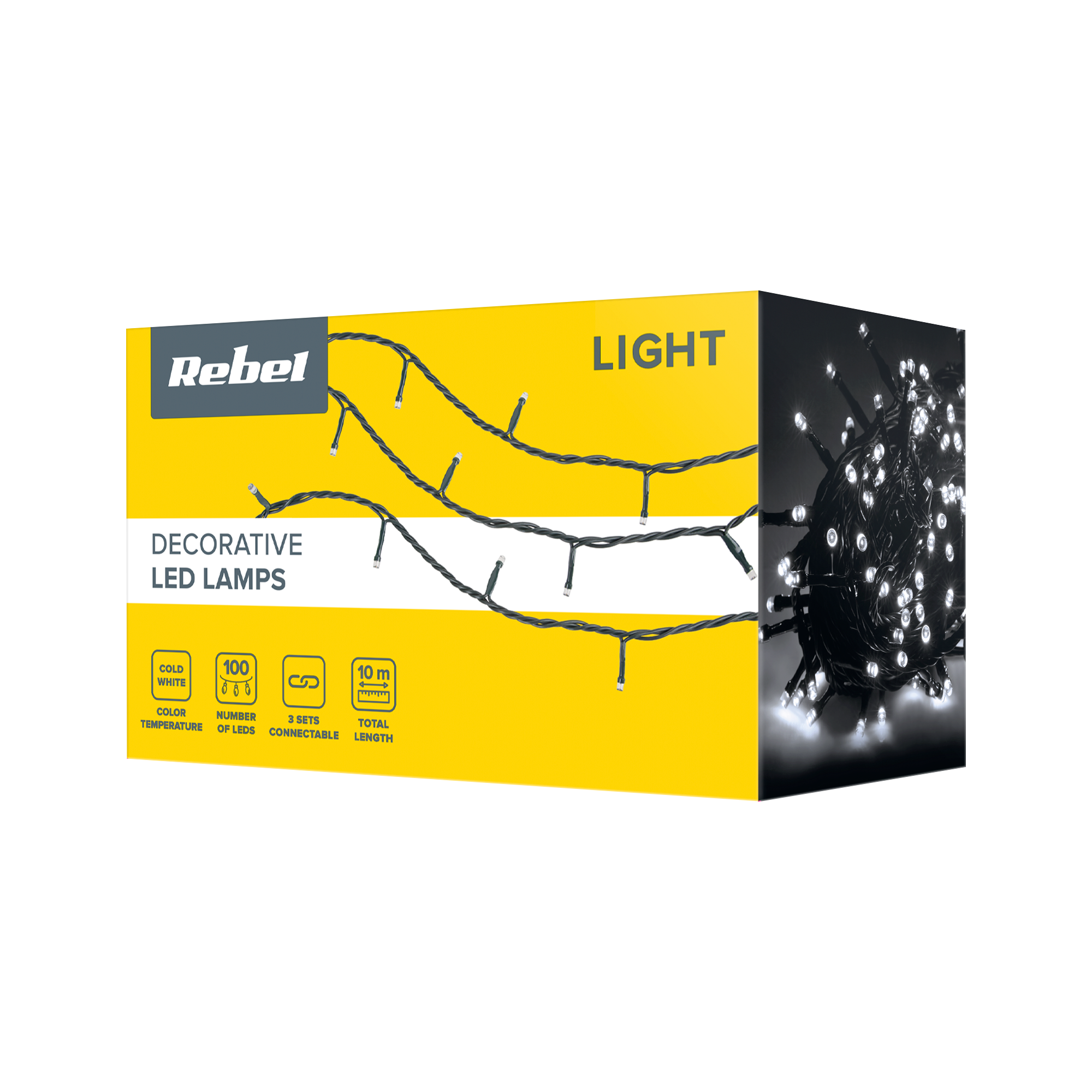 Lampki choinkowe LED Rebel to niezawodne rozwiązanie do dekoracji zewnętrznej, które dzięki zimnemu białemu światłu wprowadzą elegancki i nowoczesny akcent do każdej przestrzeni. Są idealnym wyborem do oświetlenia ogrodów, tarasów, czy elewacji budynków podczas zimowych miesięcy.